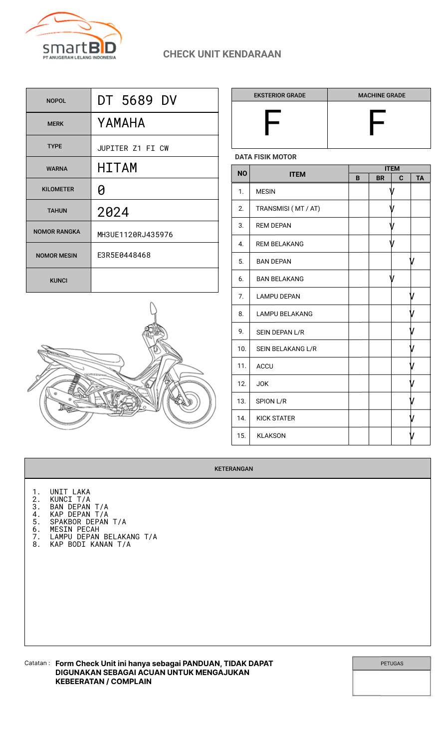 SEBELUM MELAKUKAN PENAWARAN UNIT PESERTA LELANG WAJIB MELAKUKAN PENGECEKAN UNIT DAN DOKUMEN TERLEBIH DAHULU // PIC AHMAD 082345278181 IKRAM 085241587738 //