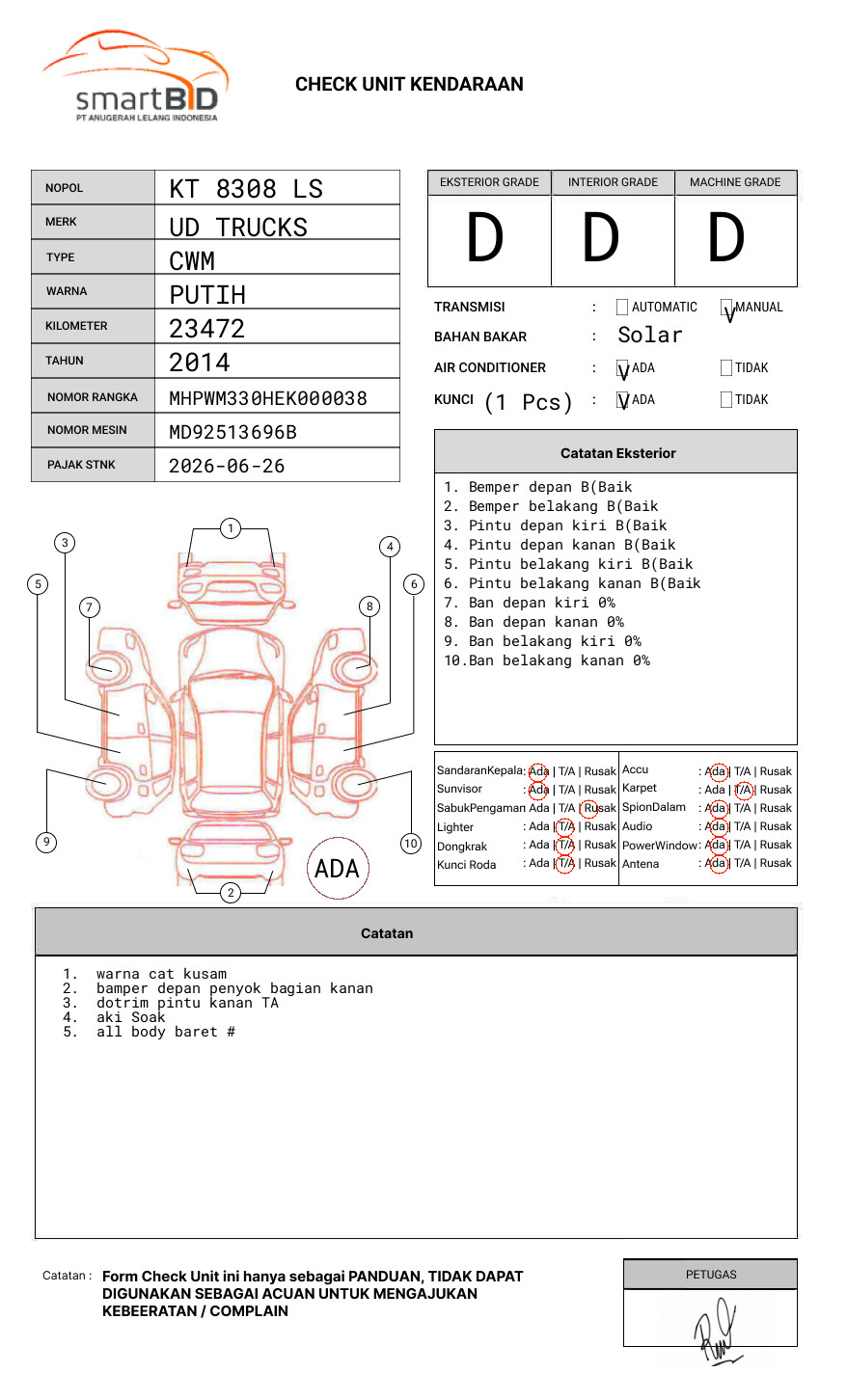 SEBELUM MELAKUKAN PENAWARAN UNIT PESERTA LELANG WAJIB MELAKUKAN PENGECEKAN UNIT DAN DOKUMEN TERLEBIH DAHULU // PIC RESKI 0853-4884-2551 //
