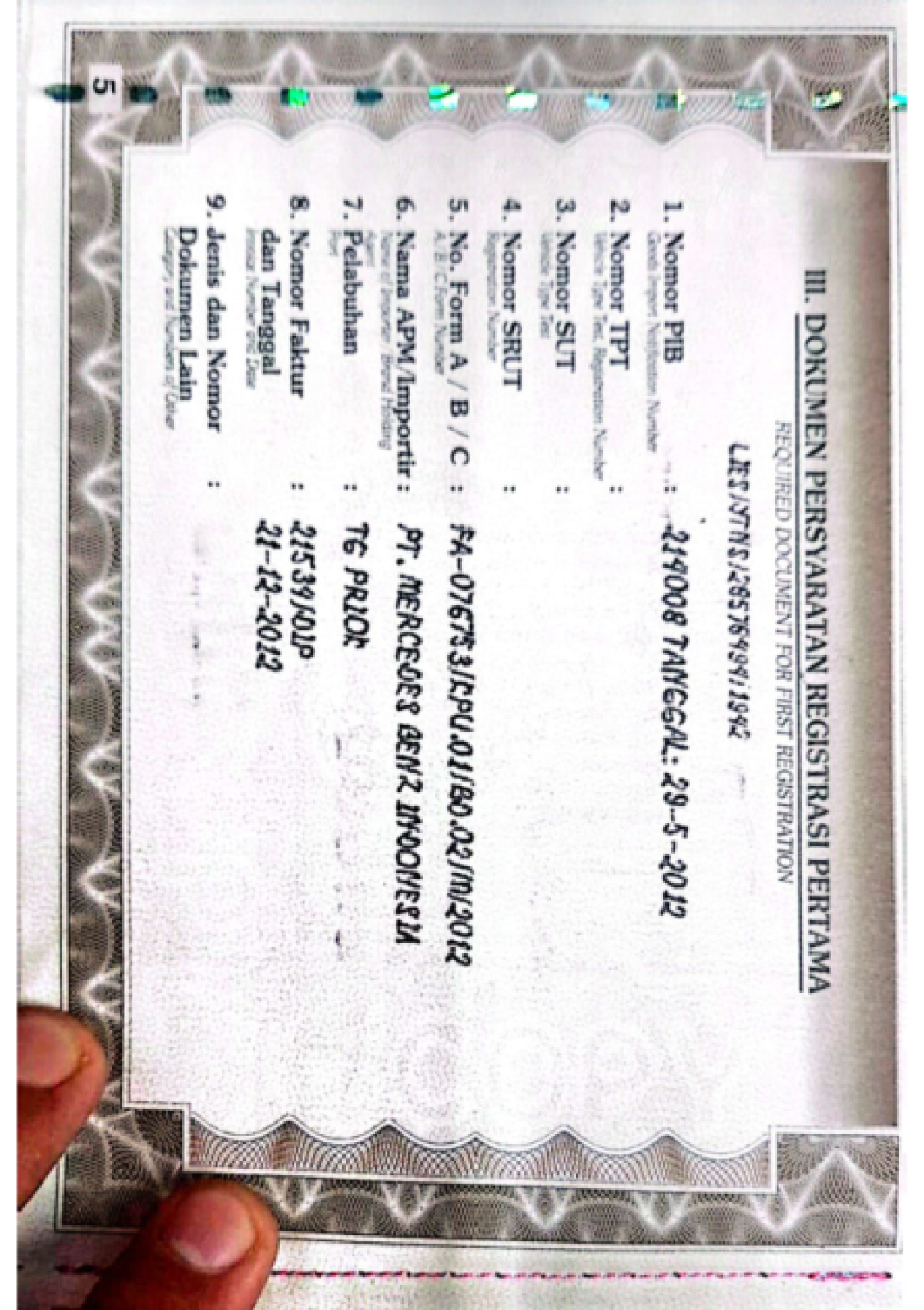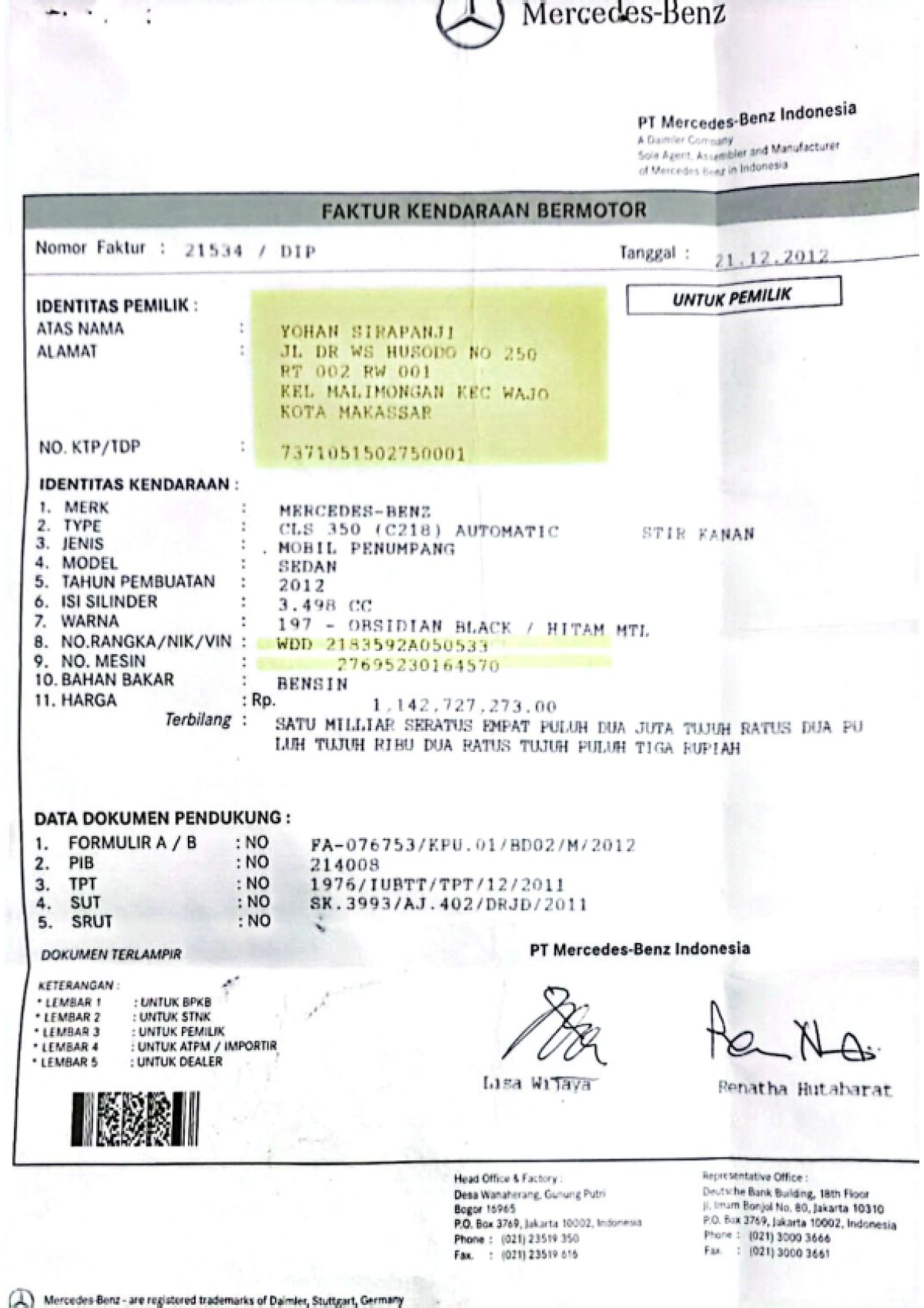 No. Rangka | : | WDD2183592A050533 |