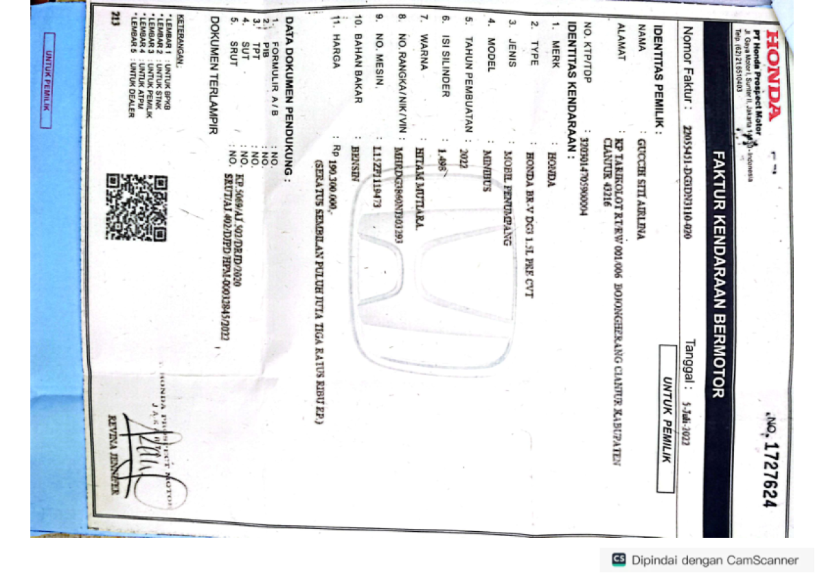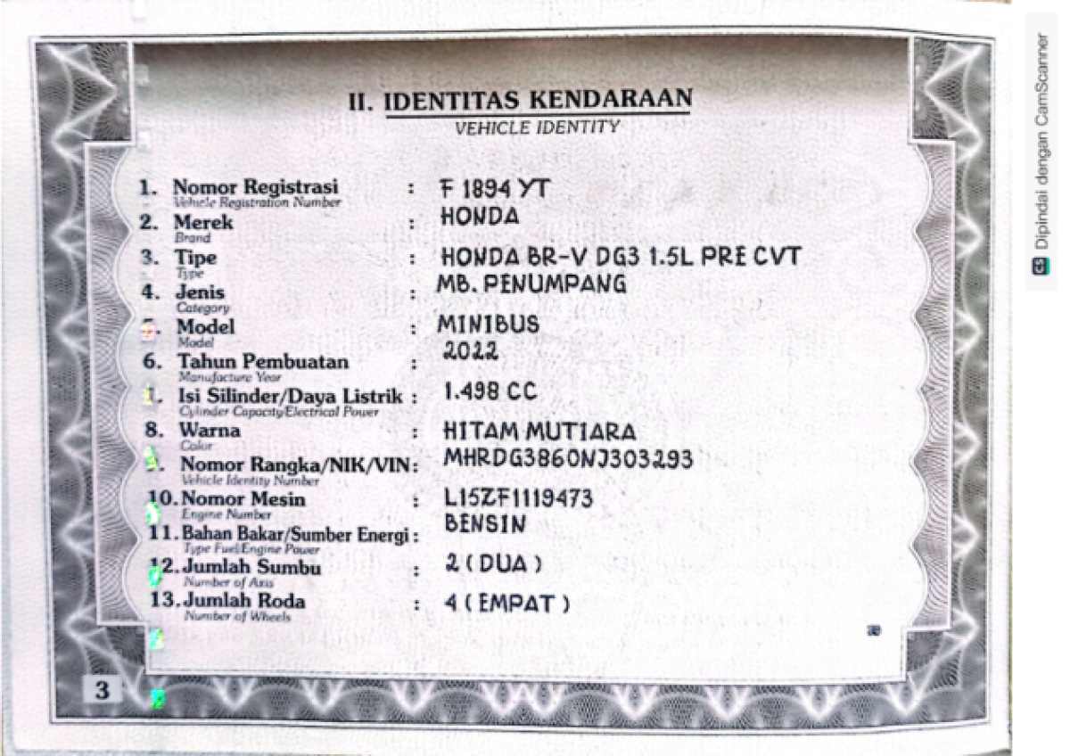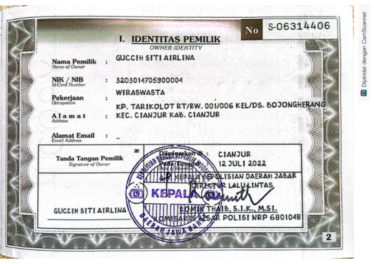 | STNK | : | Tidak Ada |