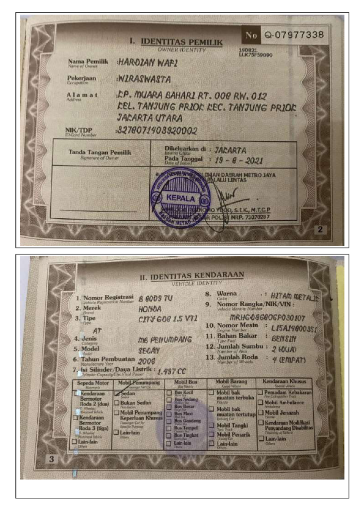 No. Polisi | : | B 8009 TU |