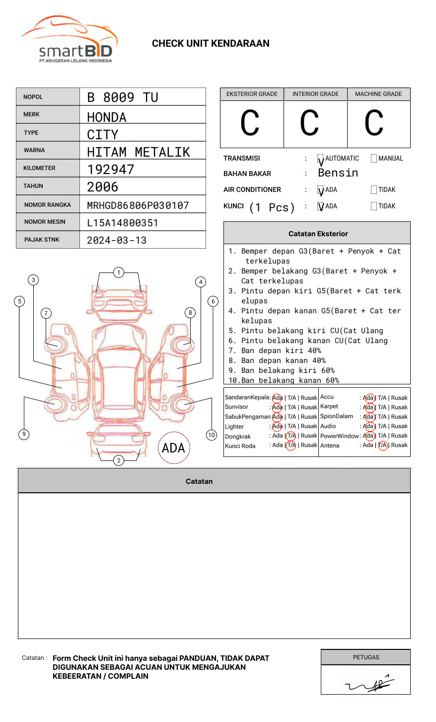 SEBELUM MELAKUKAN PENAWARAN UNIT PESERTA LELANG WAJIB MELAKUKAN PENGECEKAN UNIT DAN DOKUMEN TERLEBIH DAHULU // PIC ERVAN 081353402514 // UNIT DIKENAKAN BIAYA PPN 1.1% DARI HARGA TERBENTUK //