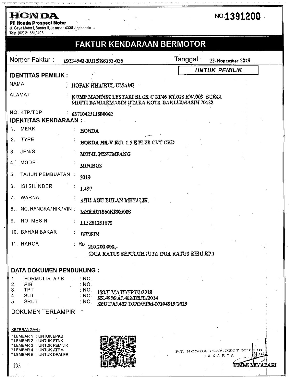 | No. Polisi | : | DA 1459 IE |