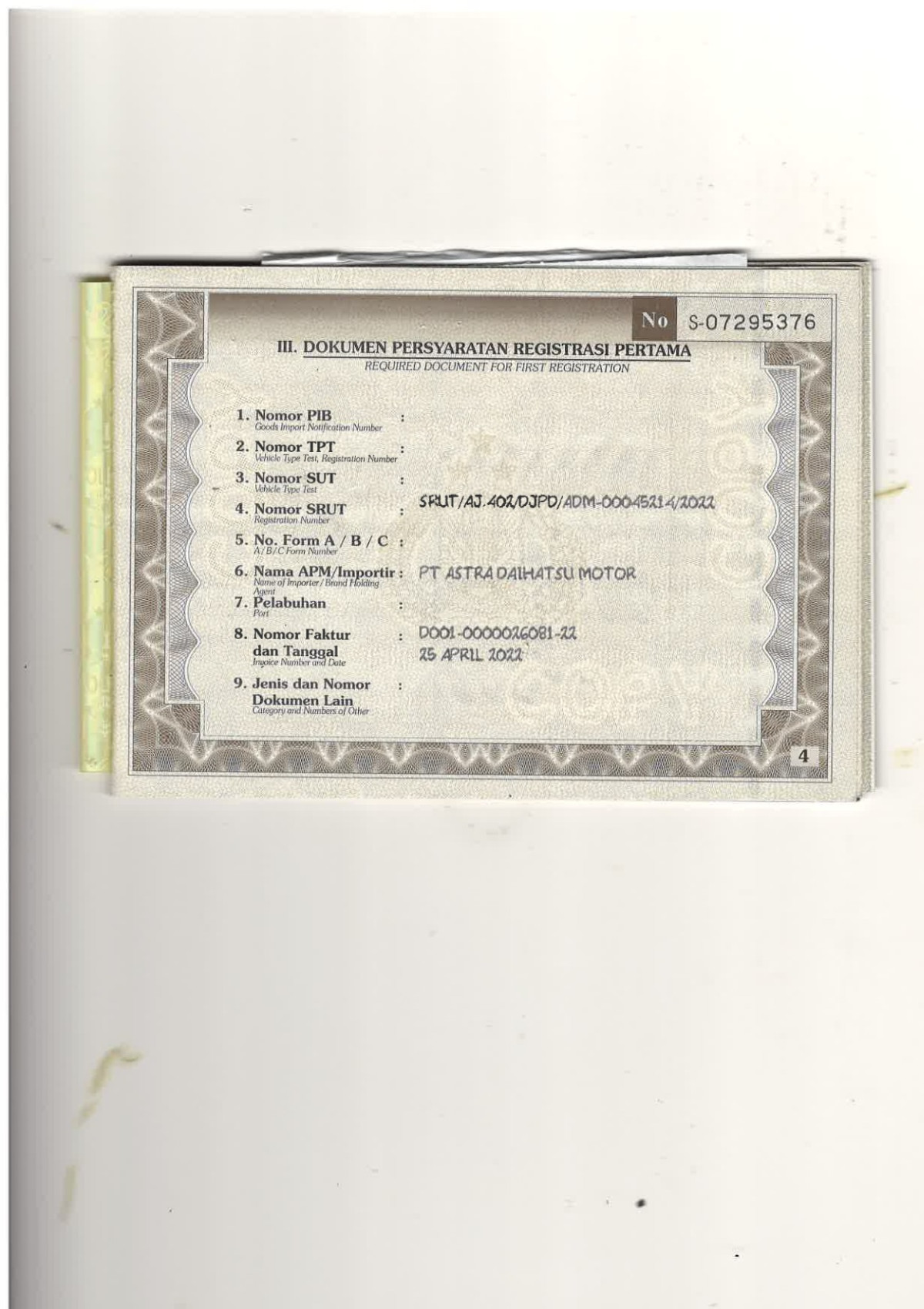 No. Rangka | : | MHKS6GJ6JNJ110944 |