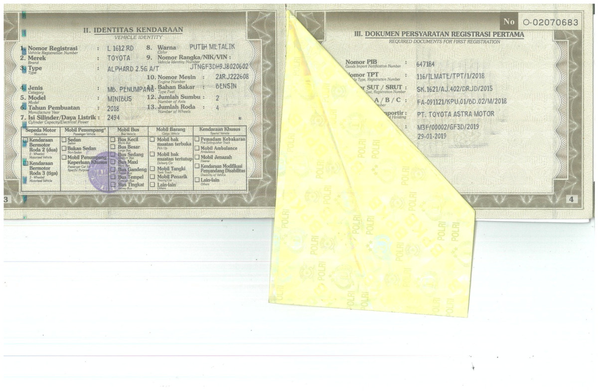 No. Rangka | : | JTNGF3DH9J8020602 |