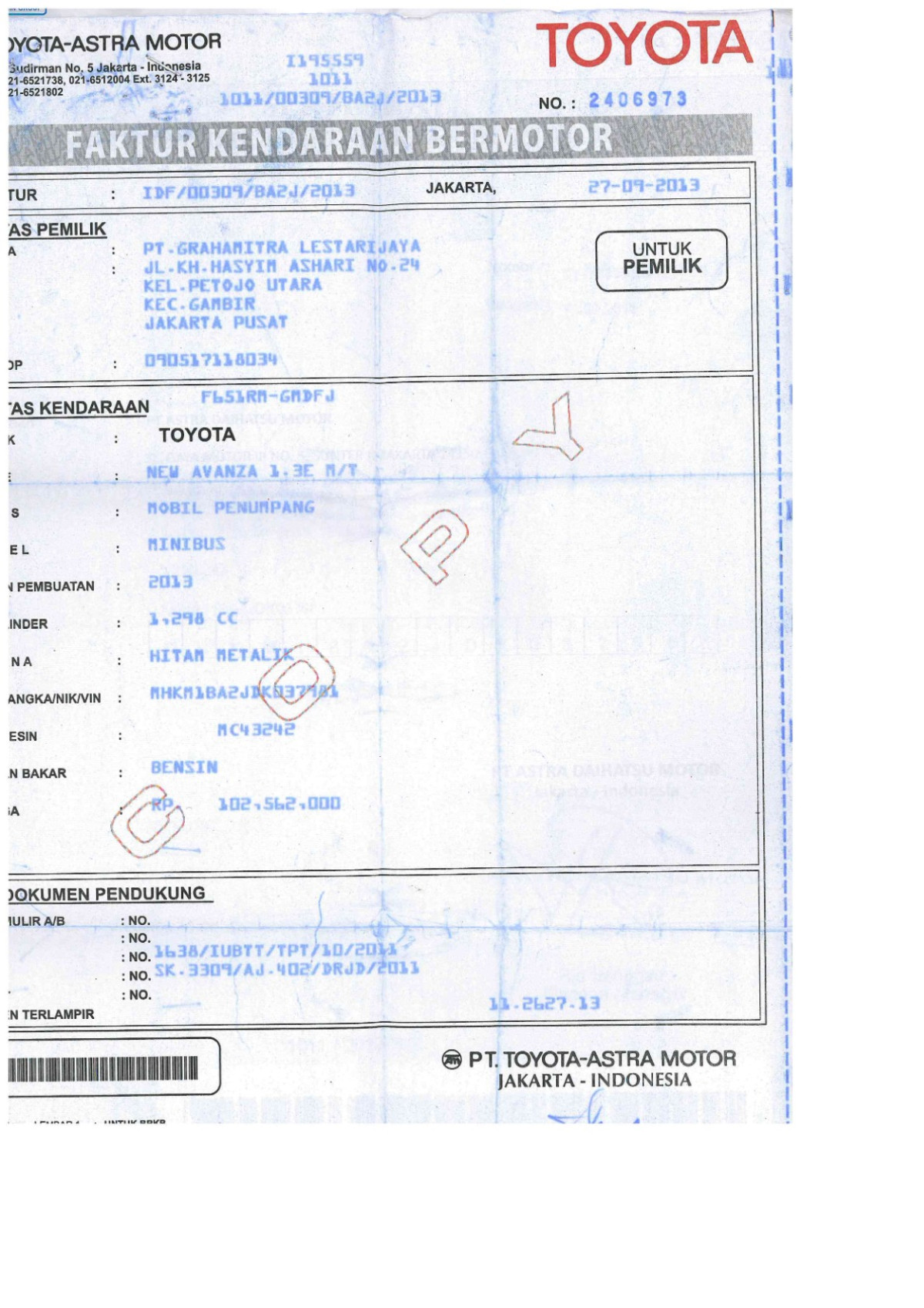 ADA PERBEDAAN NOPOL PADA FISIK DH 1675 MT PADA BPKB B 1675 PZQ TIDAK ADA PERUBAHAN NOPOL INDIKASI BBN GANTUNG // SEBELUM MELAKUKAN PENAWARAN UNIT PESERTA LELANG WAJIB MELAKUKAN PENGECEKAN UNIT DAN DOKUMEN TERLEBIH DAHULU // PIC PAK NATAN 081338280981 / INSPEKSI PAK GAD 085338212232 //