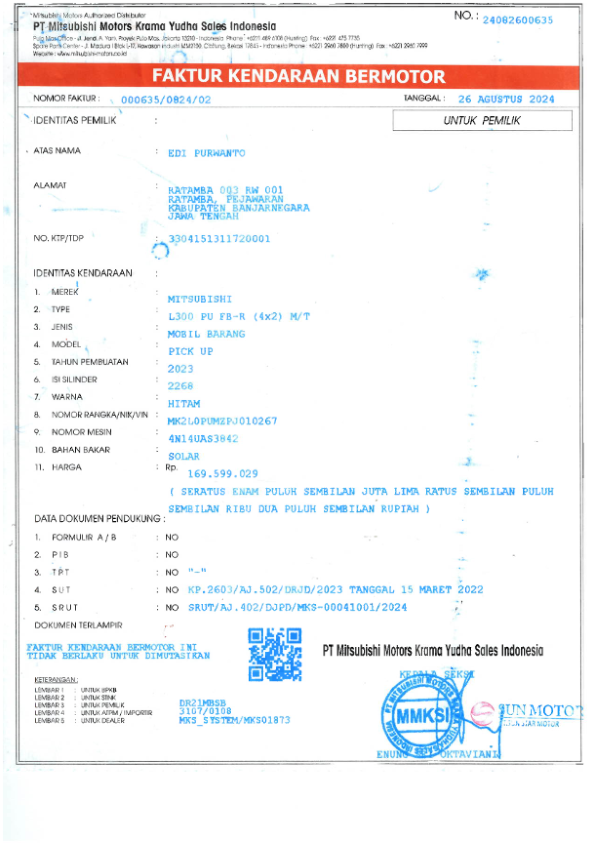 No. Rangka | : | MK2L0PUMZPJ010267 |
