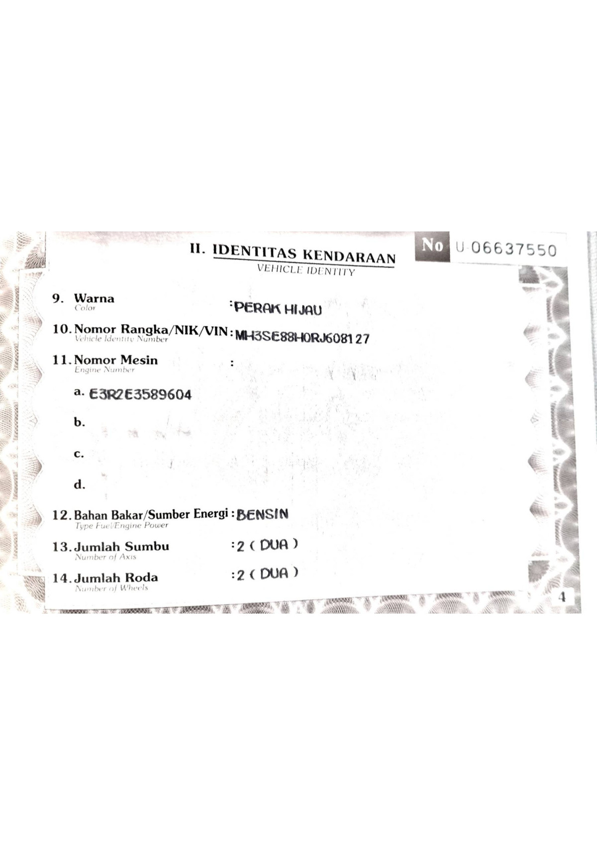 | No. Rangka | : | MH3SE88H0RJ608127 |