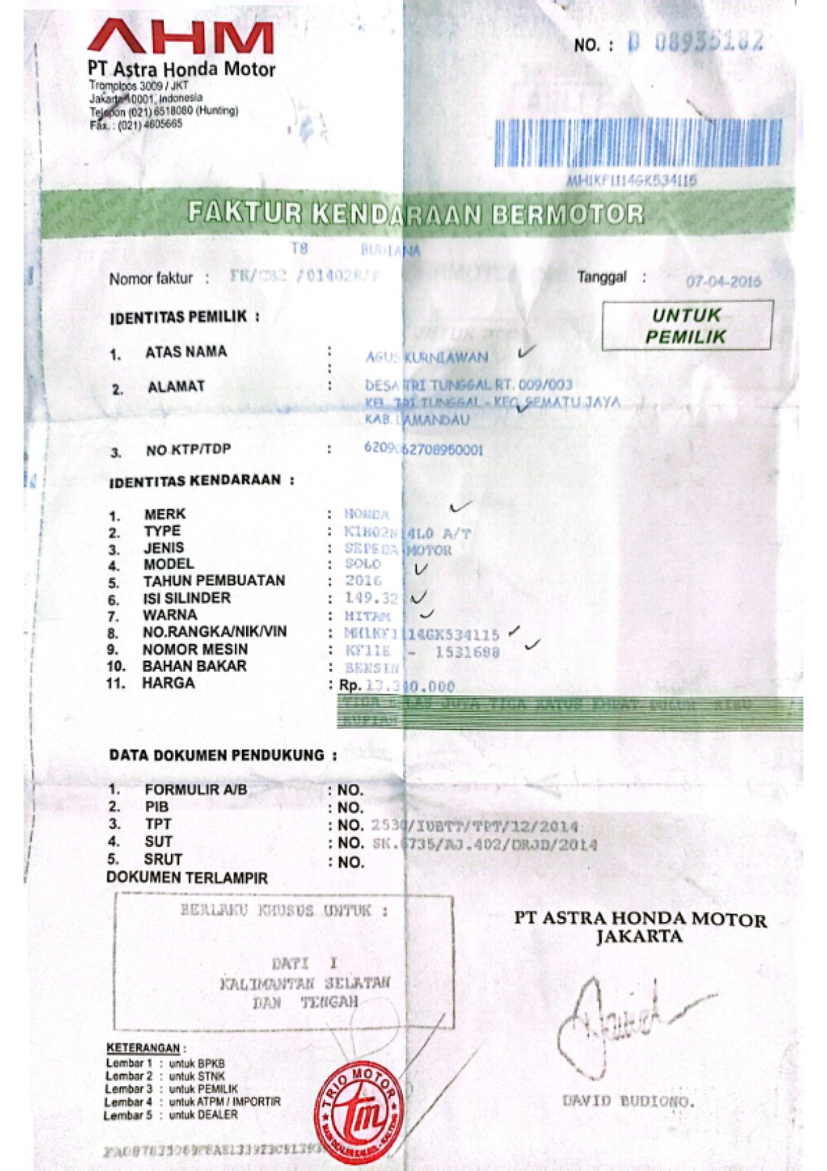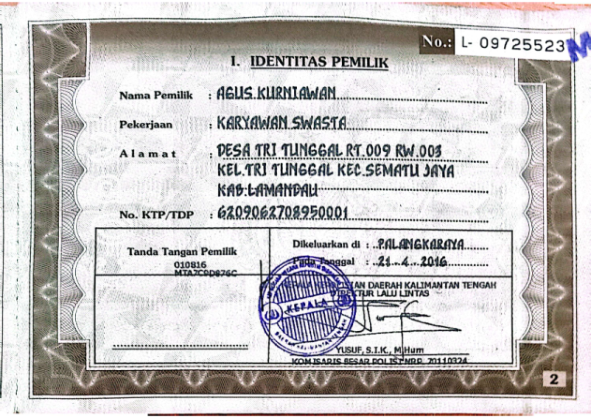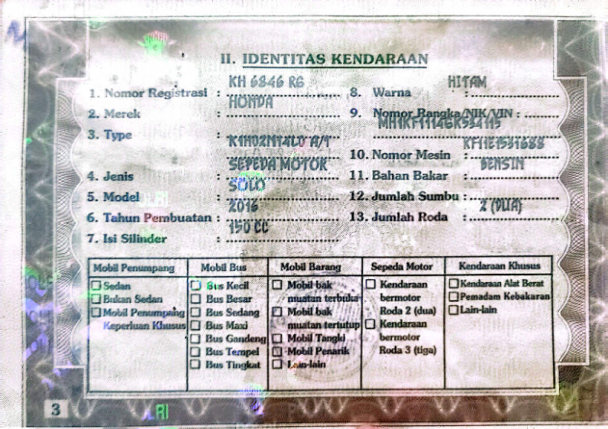 | No. Polisi | : | KH 6846 RG |