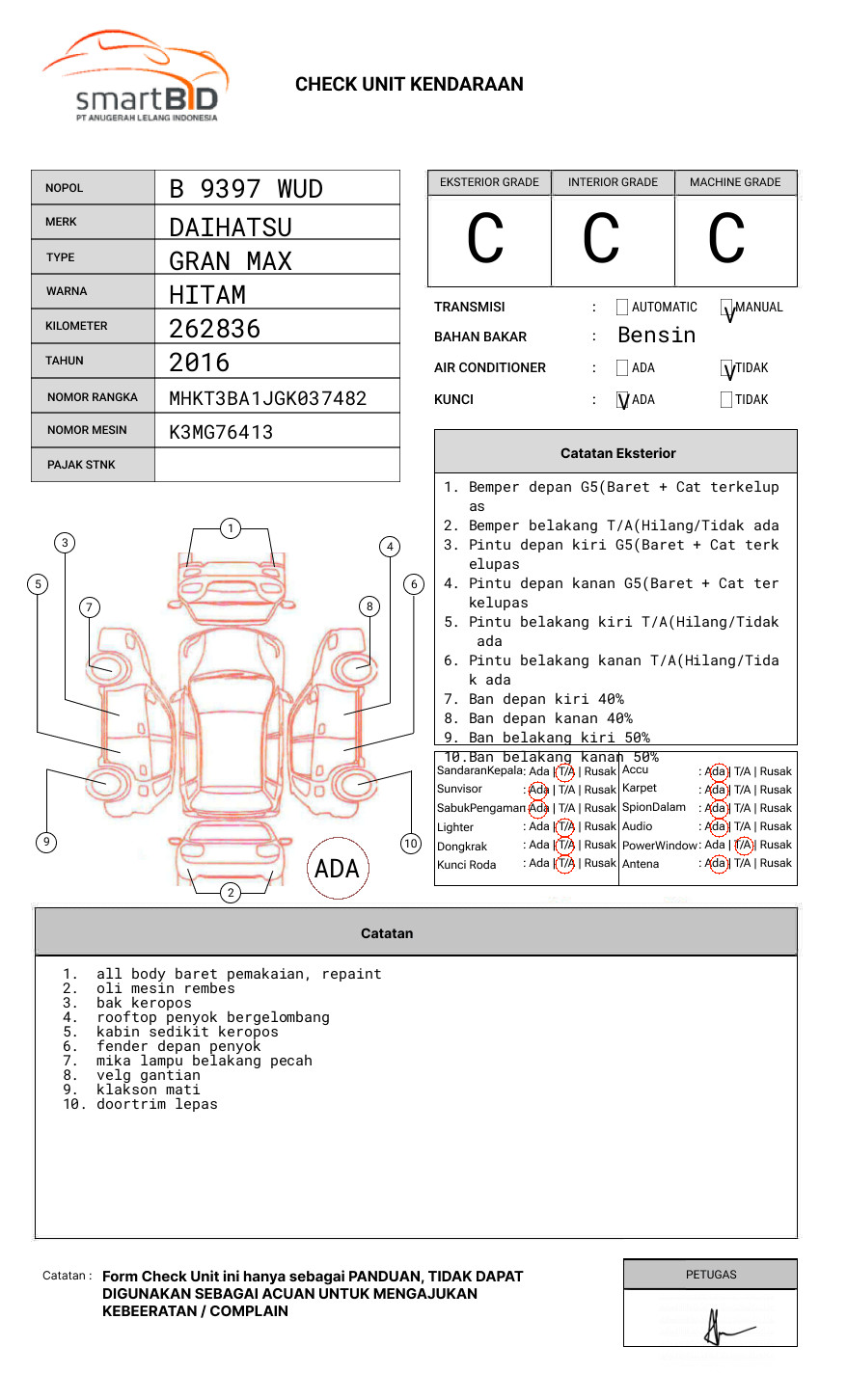No. Rangka | : | MHKT3BA1JGK037482 |