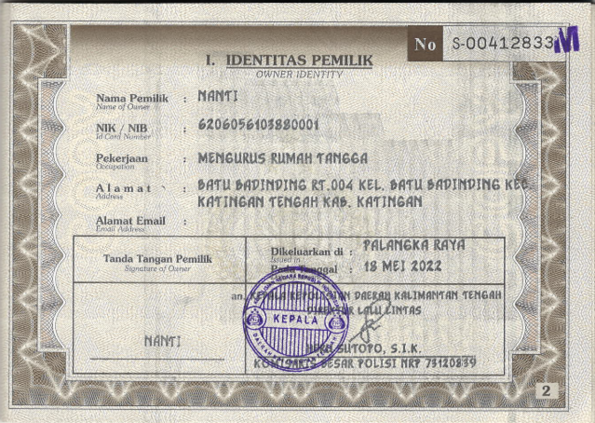 No. Rangka | : | MHKAA1AY8NK005637 |