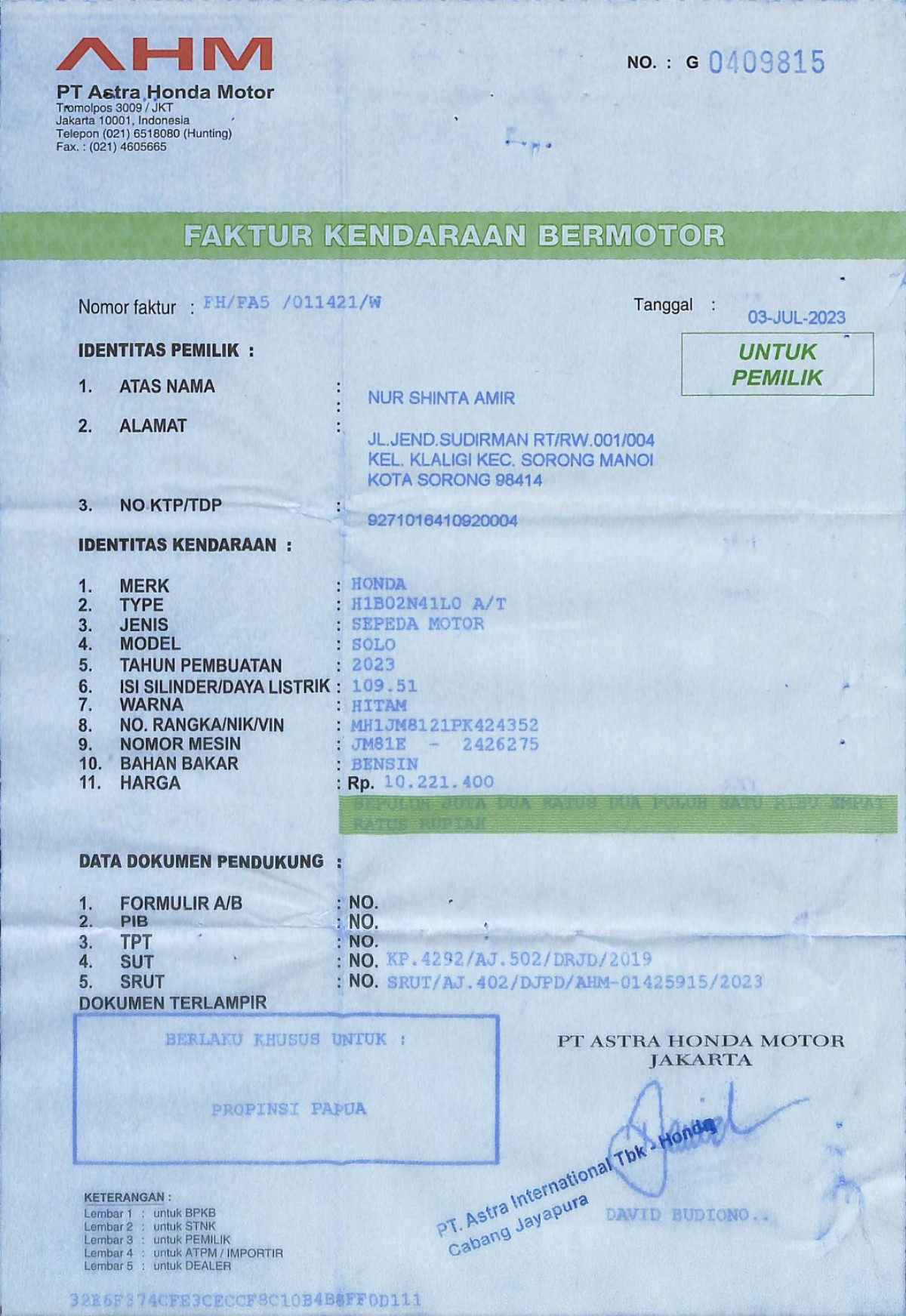 SEBELUM MELAKUKAN PENAWARAN UNIT PESERTA LELANG WAJIB MELAKUKAN PENGECEKAN UNIT DAN DOKUMEN TERLEBIH DAHULU // PIC ANDY 082189084113 // UNIT DIKENAKAN BIAYA PPN 1.1% DARI HARGA TERBENTUK // NOPOL FISIK T/A //