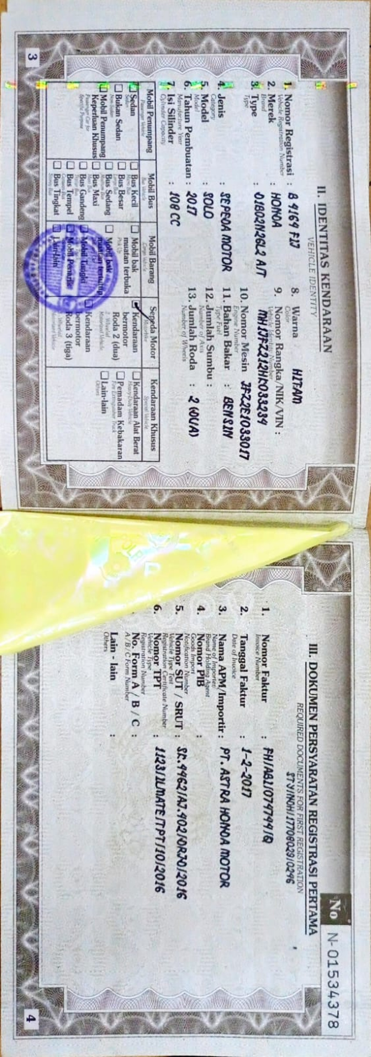 | No. Rangka | : | MH1JFZ212HK033234 |