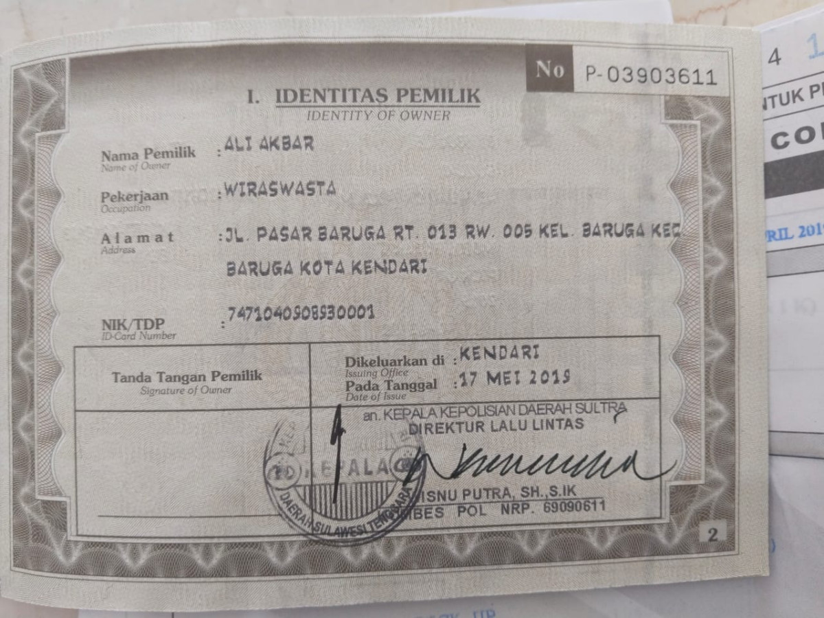 STNK | : | Tidak Ada |