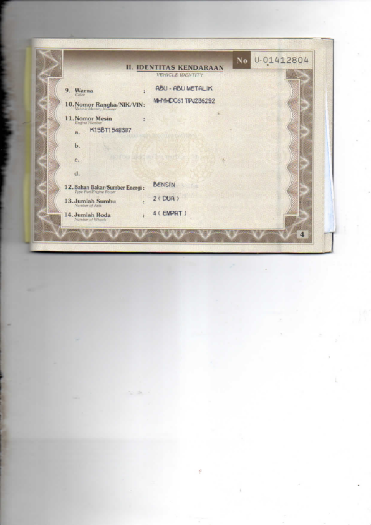No. Rangka | : | MHYHDC61TPJ236292 |