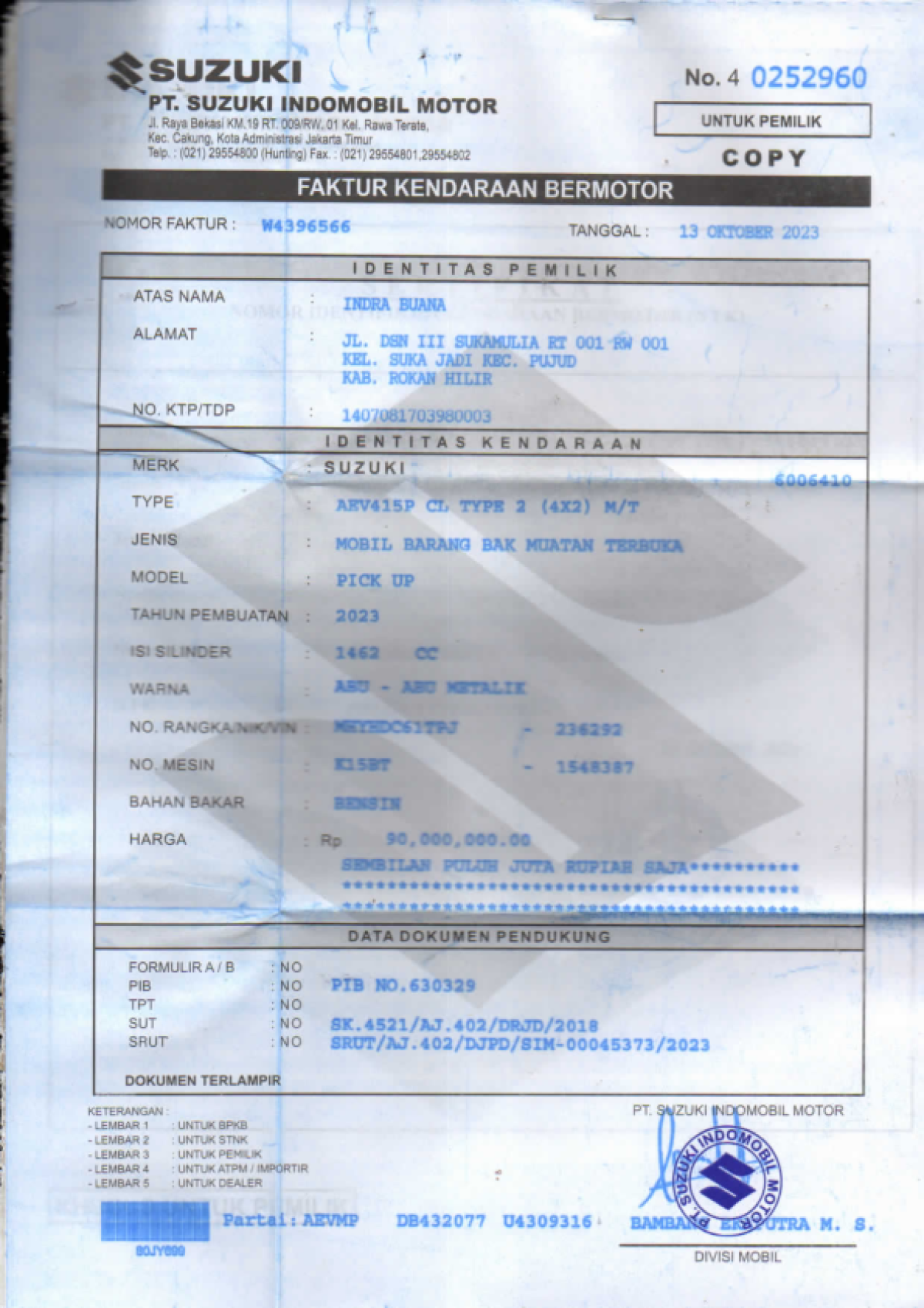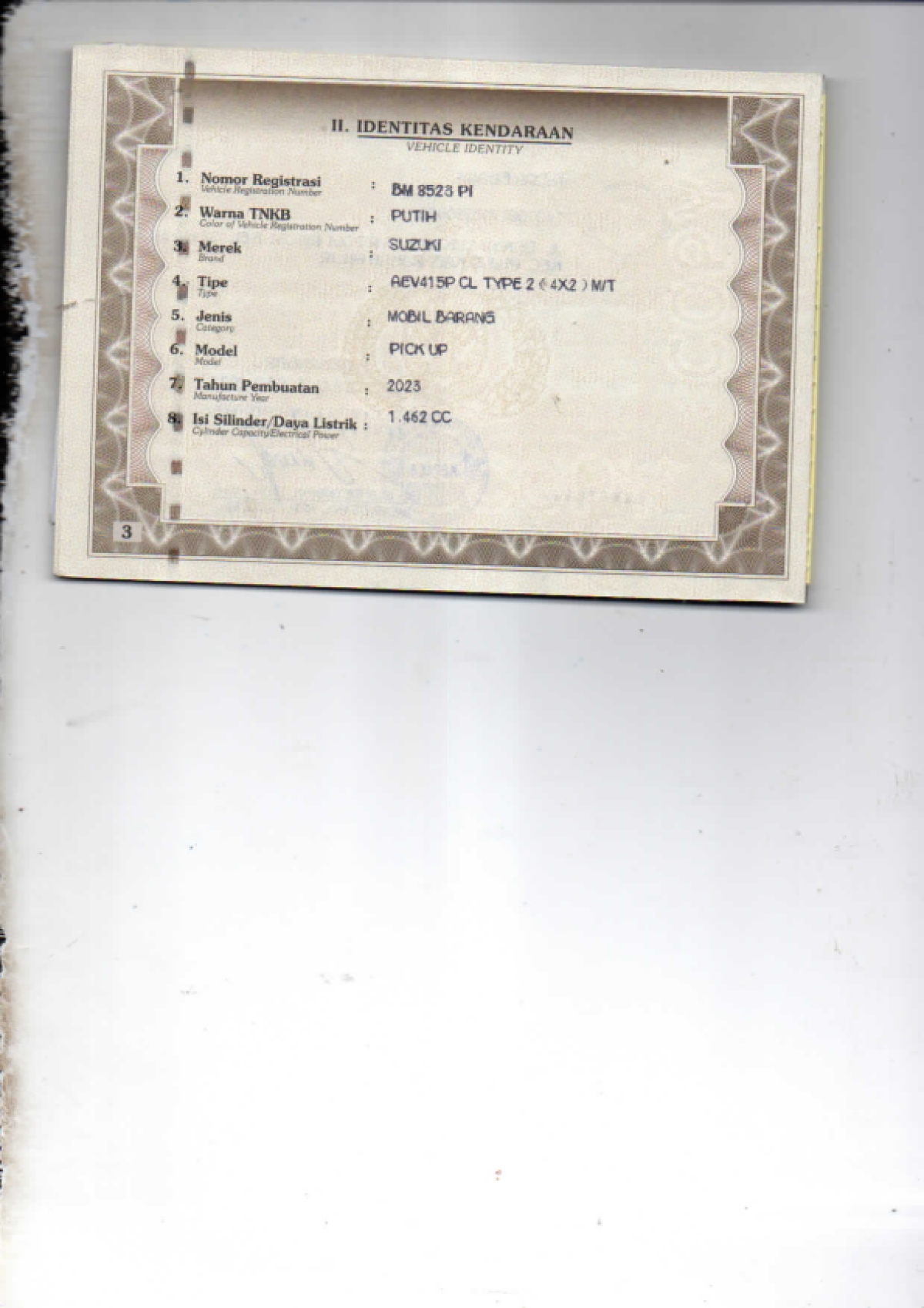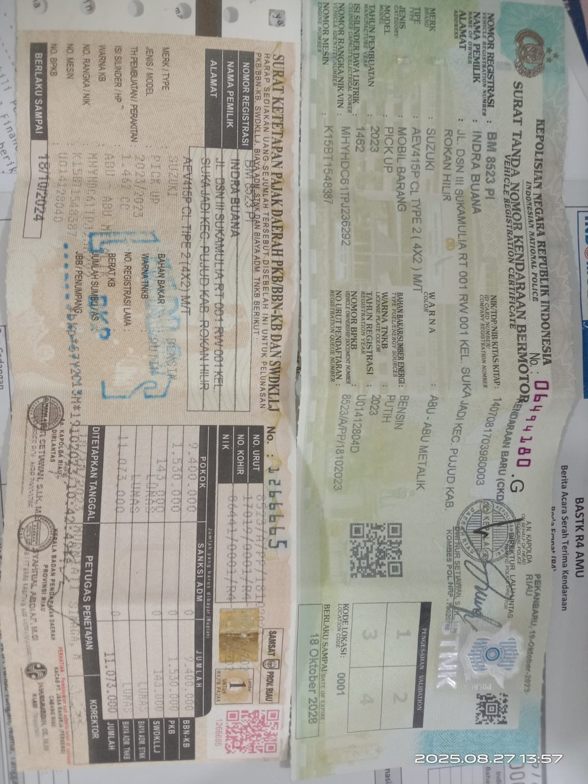 No. Polisi | : | BM 8523 PI |