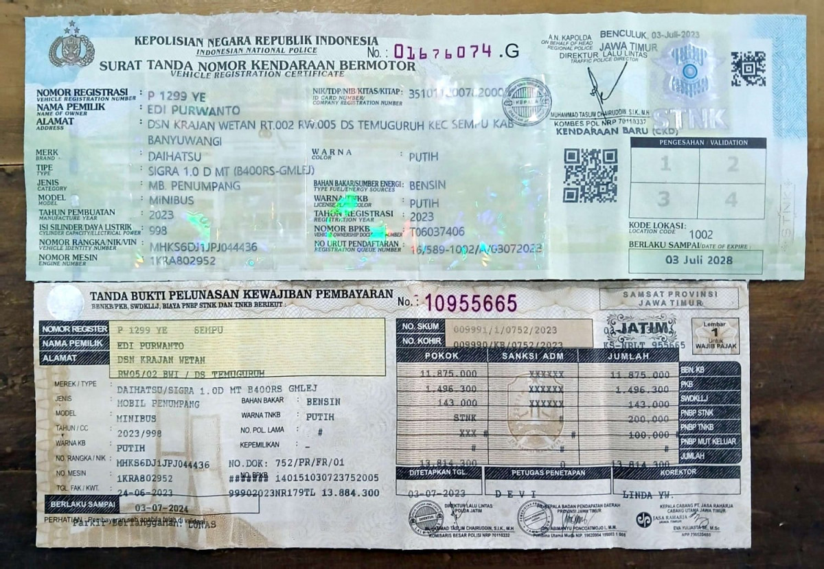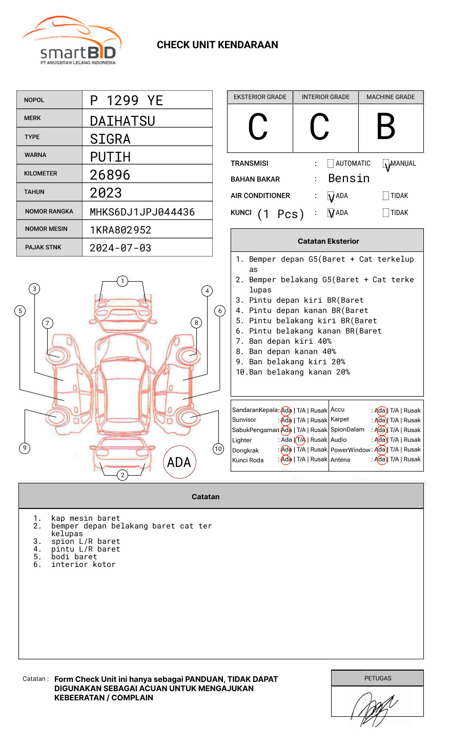 ADA PERBEDAAN NOPOL PADA FISIK P 1936 VQ PADA BPKB P 1299 YE TIDAK ADA PERUBAHAN NOPOL INDIKASI BBN GANTUNG // SEBELUM MELAKUKAN PENAWARAN UNIT PESERTA LELANG WAJIB MELAKUKAN PENGECEKAN UNIT DAN DOKUMEN TERLEBIH DAHULU // PIC JEMY : 0852-5833-5777 // INSPEKSI AGUNG : 0852-3671-4592 // UNIT DIKENAKAN BIAYA PPN 1.1% DARI HARGA TERBENTUK //