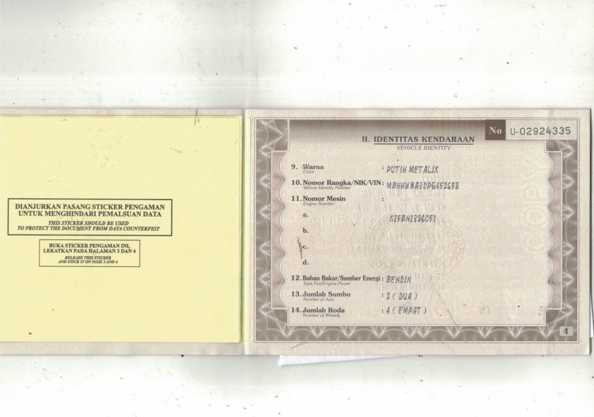 No. Rangka | : | MBHHWBA3SPG452658 |