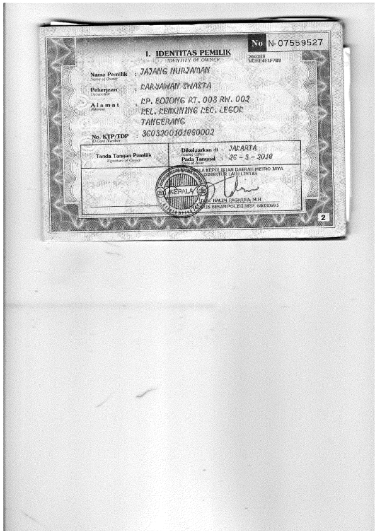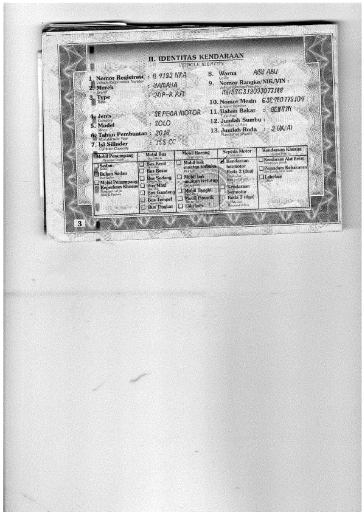 | No. Rangka | : | MH3SG3190JJ077188 |