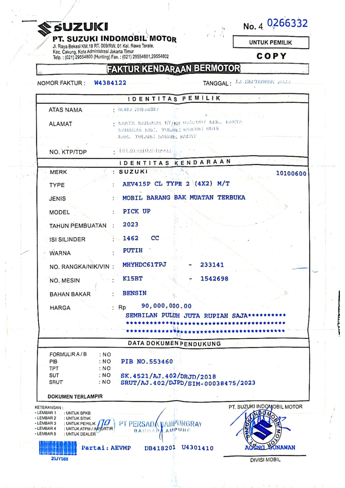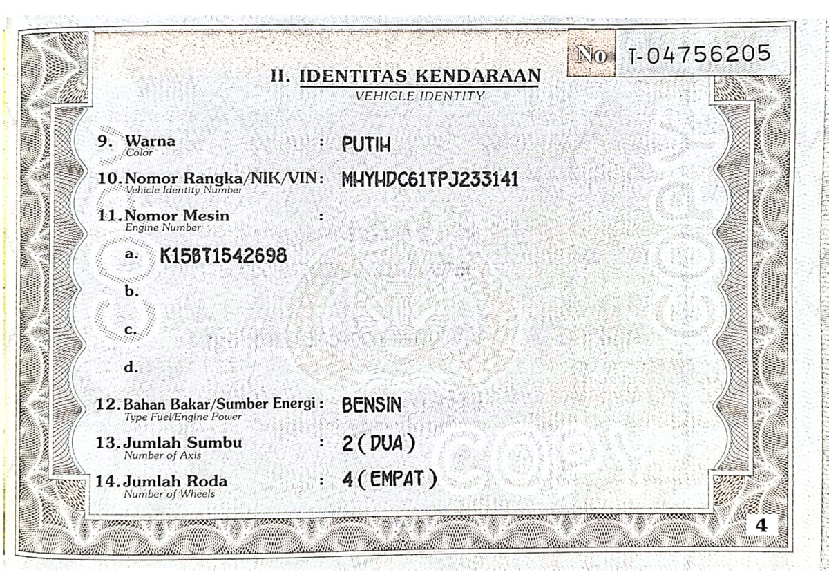No. Rangka | : | MHYHDC61TPJ233141 |