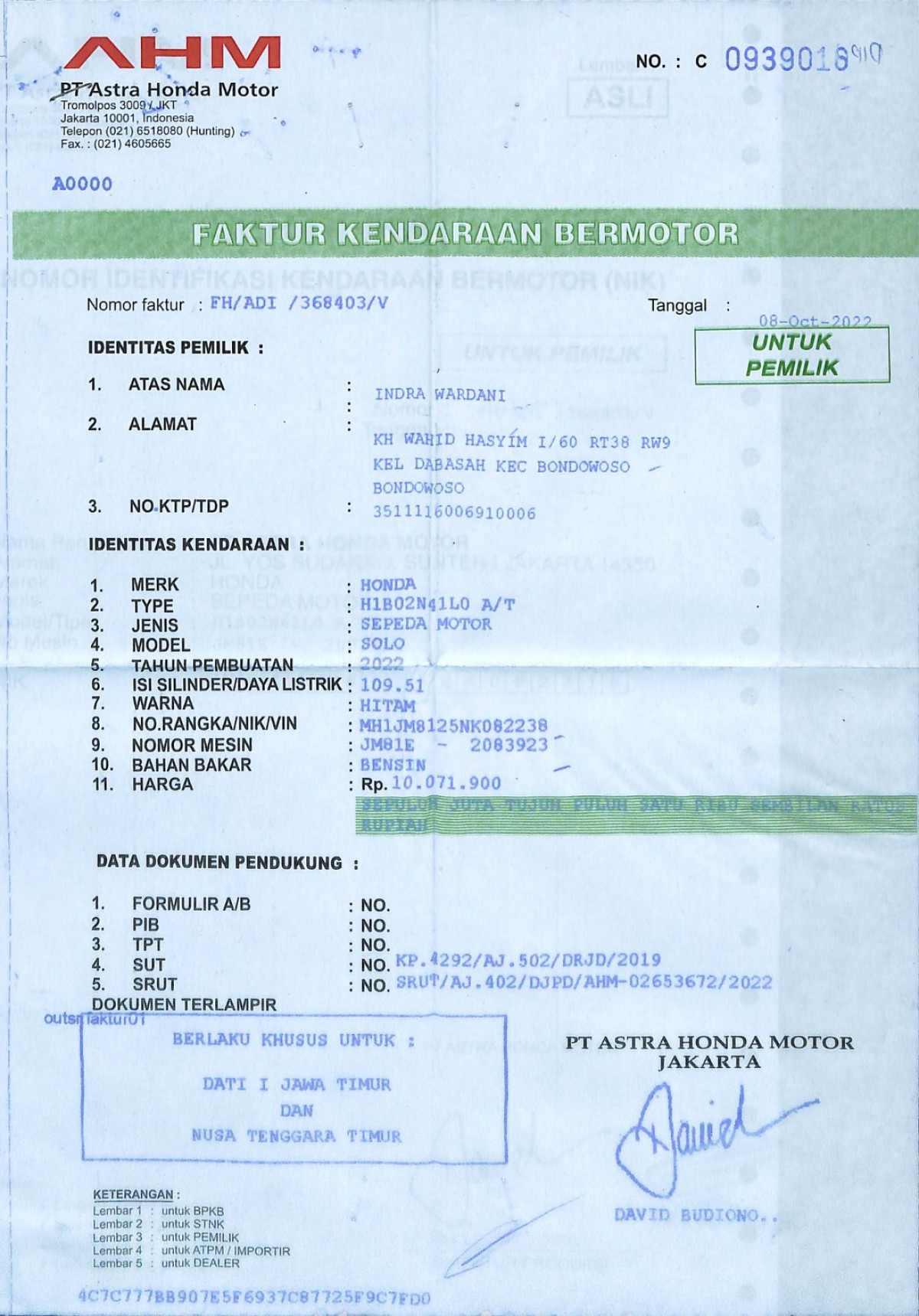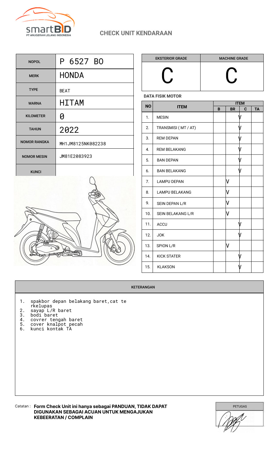 SEBELUM MELAKUKAN PENAWARAN UNIT PESERTA LELANG WAJIB MELAKUKAN PENGECEKAN UNIT DAN DOKUMEN TERLEBIH DAHULU // PIC JEMY : 0852-5833-5777 // INSPEKSI AGUNG : 0852-3671-4592 // UNIT DIKENAKAN BIAYA PPN 1.1% DARI HARGA TERBENTUK // FOTO NOKA T/A TIDAK TERJANGKAU