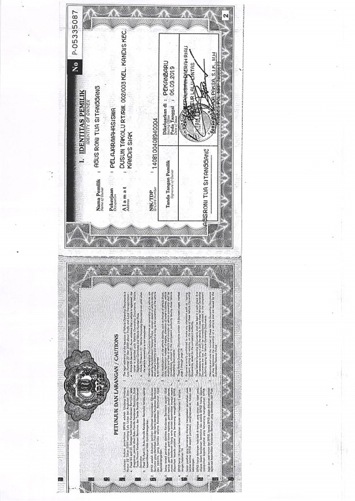 No. Polisi | : | BM 1173 SW |