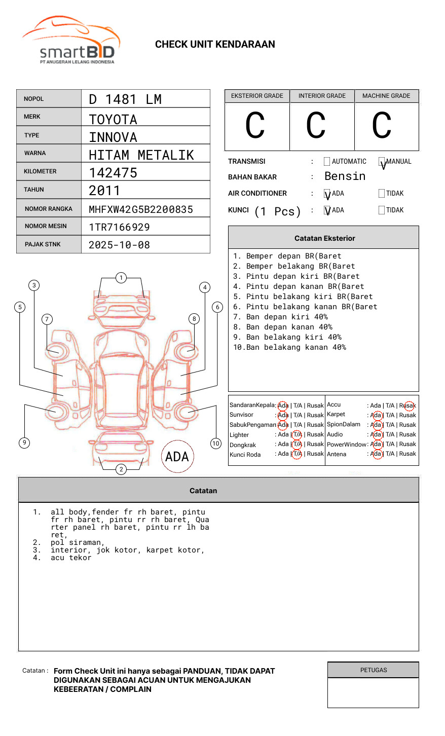 SEBELUM MELAKUKAN PENAWARAN UNIT PESERTA LELANG WAJIB MELAKUKAN PENGECEKAN UNIT DAN DOKUMEN TERLEBIH DAHULU // PIC DENNY : 0852-9442-5362 // UNIT DIKENAKAN BIAYA PPN 1.1% DARI HARGA TERBENTUK //