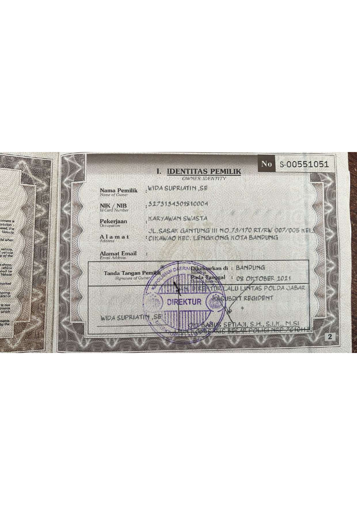 No. Polisi | : | D 1481 LM |