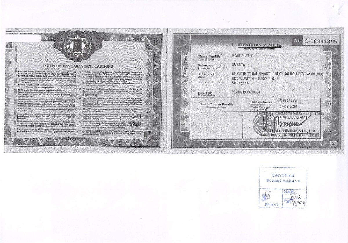 No. Polisi | : | L 9388 BV |