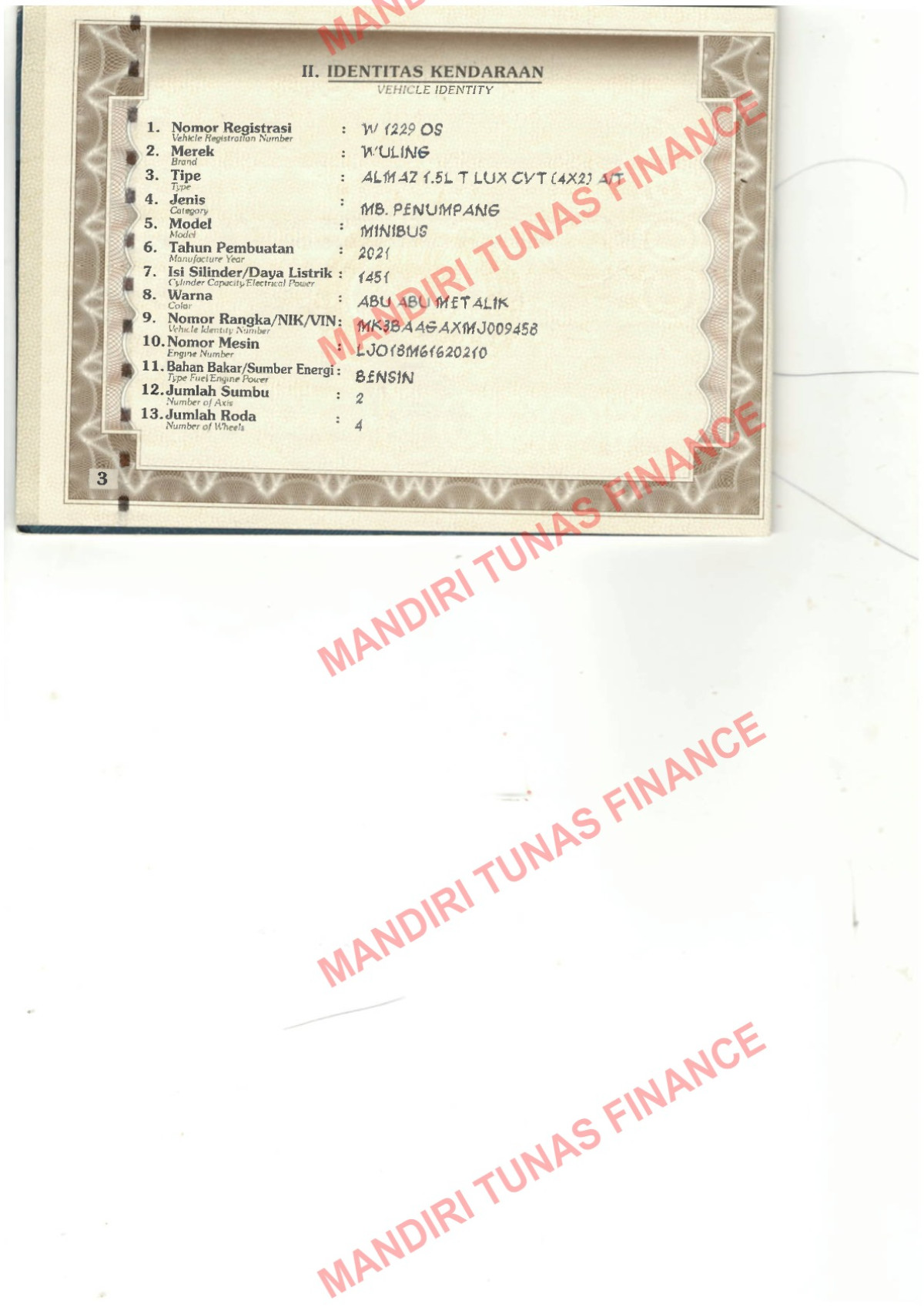 No. Rangka | : | MK3BAAGAXMJ009458 |