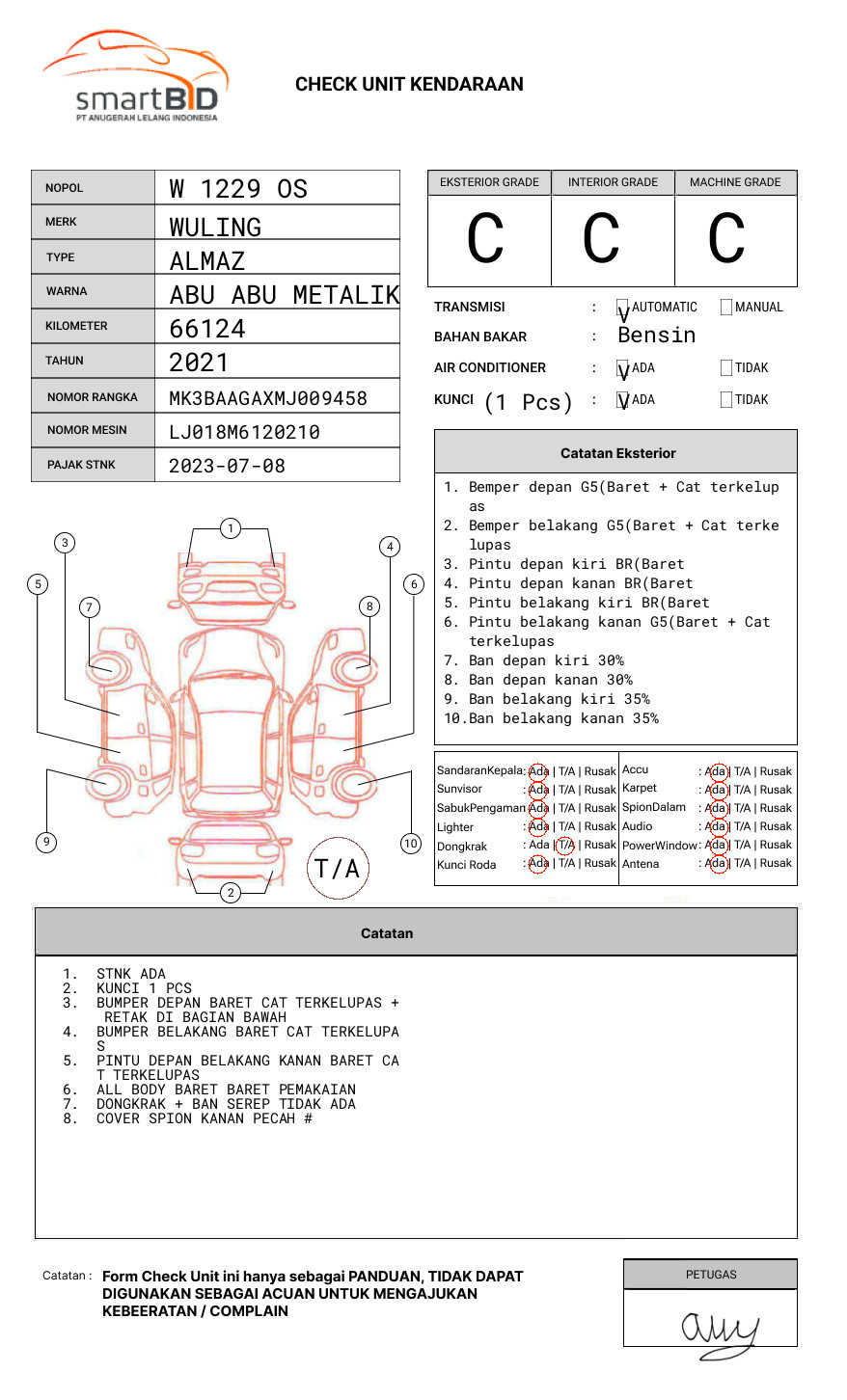 SEBELUM MELAKUKAN PENAWARAN UNIT PESERTA LELANG WAJIB MELAKUKAN PENGECEKAN UNIT DAN DOKUMEN TERLEBIH DAHULU // PIC ARDIAZ 082142028080 // UNIT DIKENAKAN BIAYA PPN 1.1% DARI HARGA TERBENTUK // ADA BIAYA ROYA FIDUCIA 100,000 DITANGGUNG PEMENANG