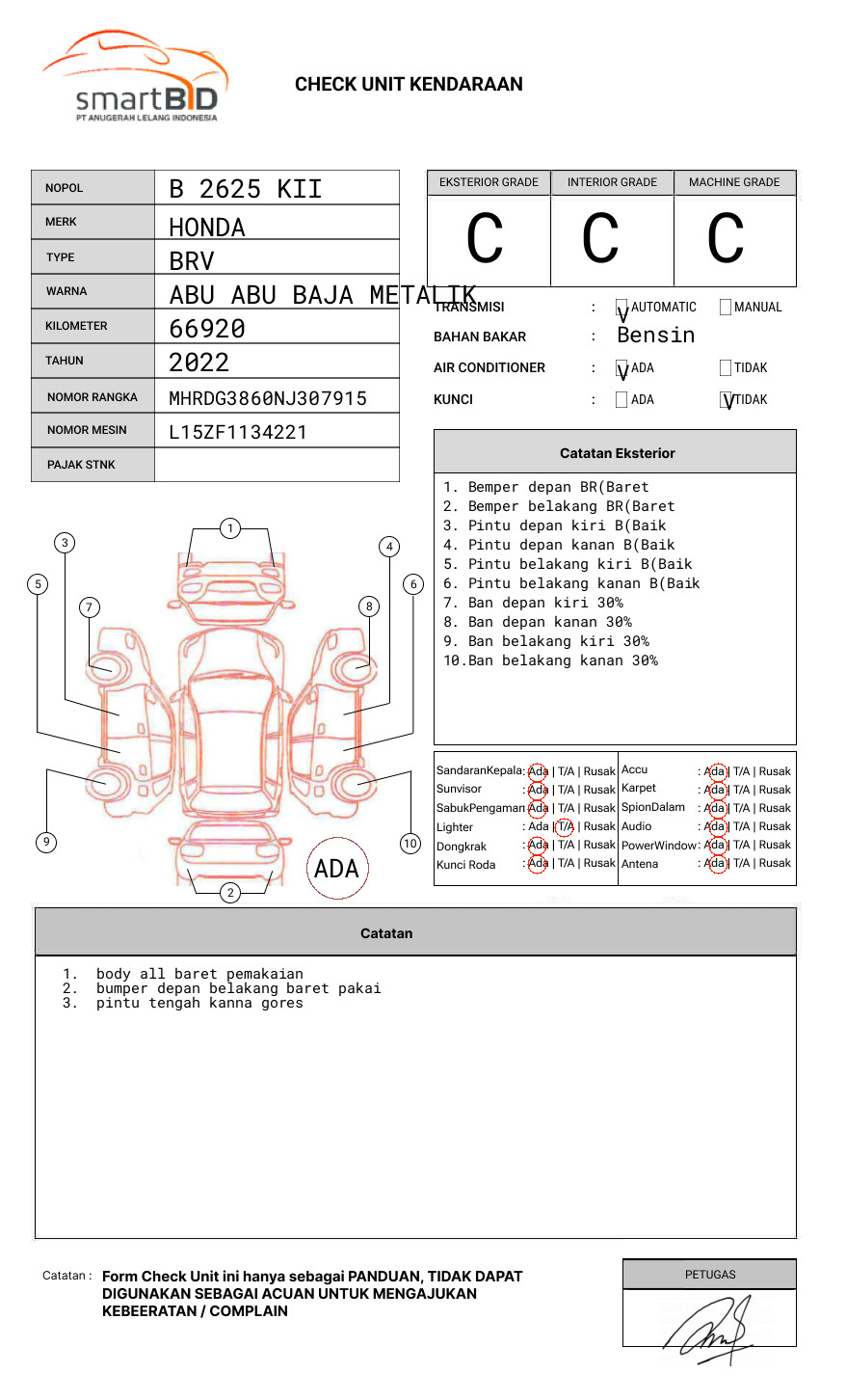 SEBELUM MELAKUKAN PENAWARAN UNIT PESERTA LELANG WAJIB MELAKUKAN PENGECEKAN UNIT DAN DOKUMEN TERLEBIH DAHULU // PIC WAHYU : 082124062748// UNIT DIKENAKAN BIAYA PPN 1.1% DARI HARGA TERBENTUK //