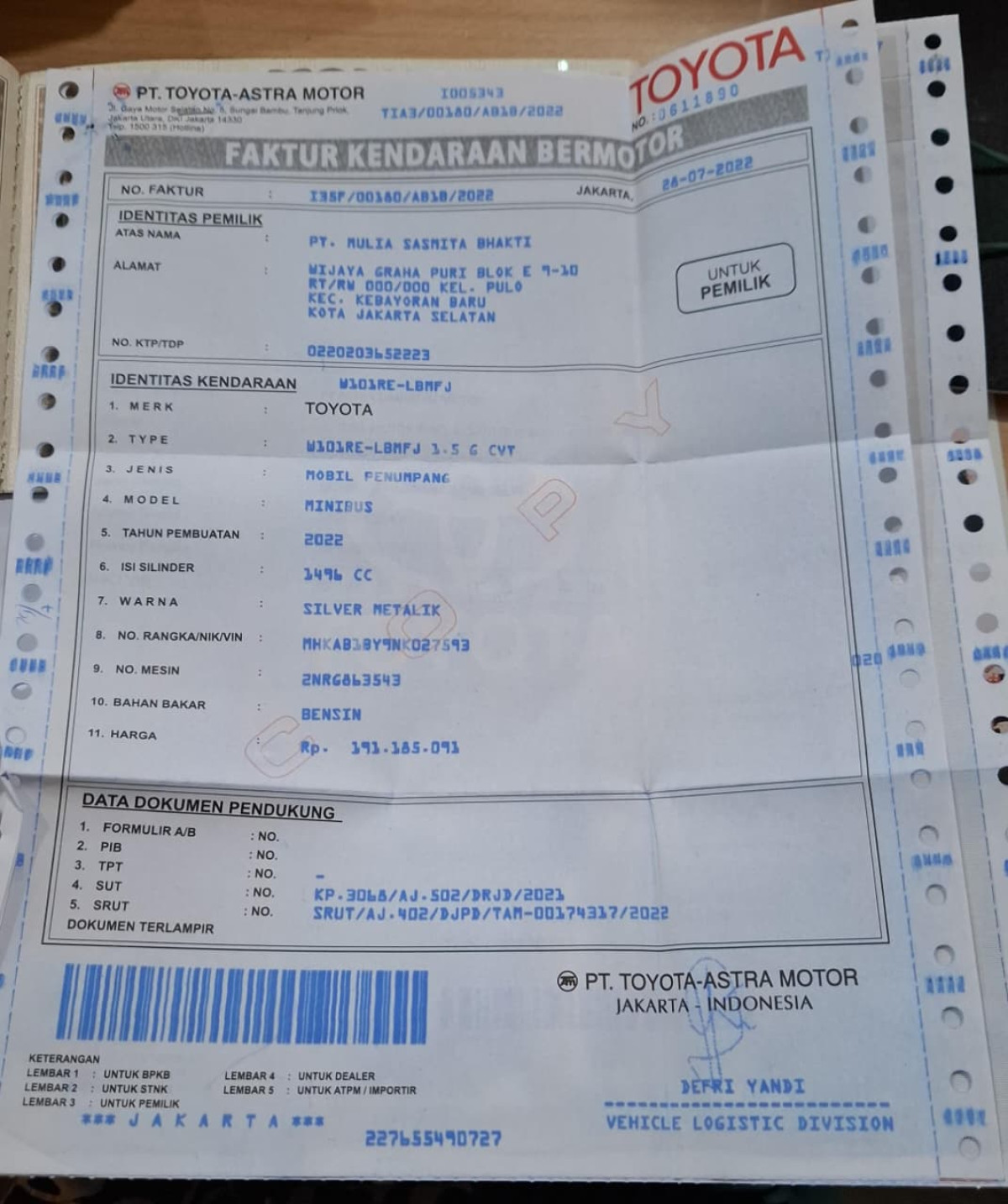 No. Polisi | : | B 1335 DFY |