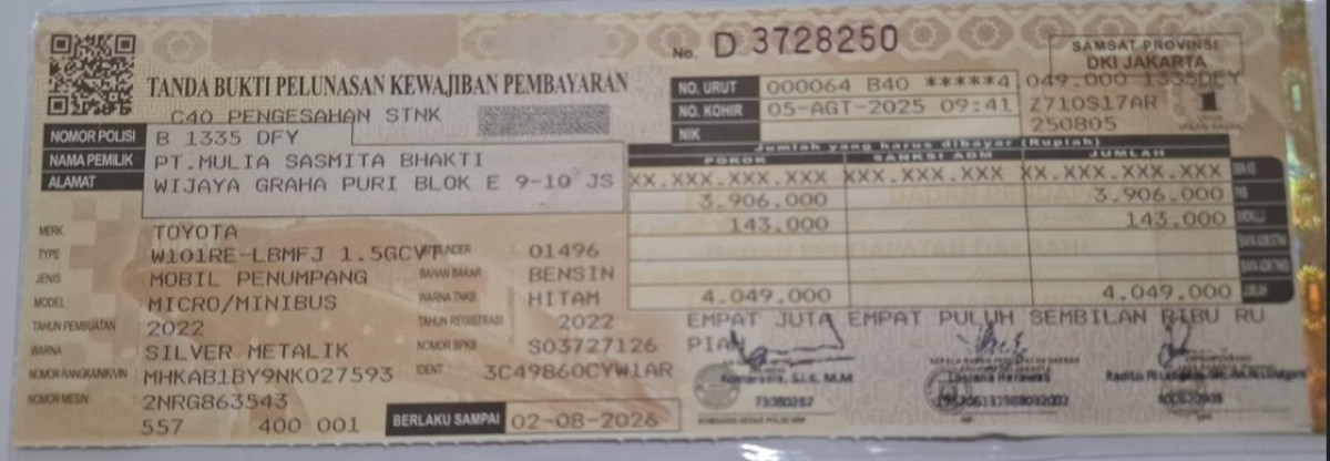 Pajak STNK | : | 2 Agustus 2026 |