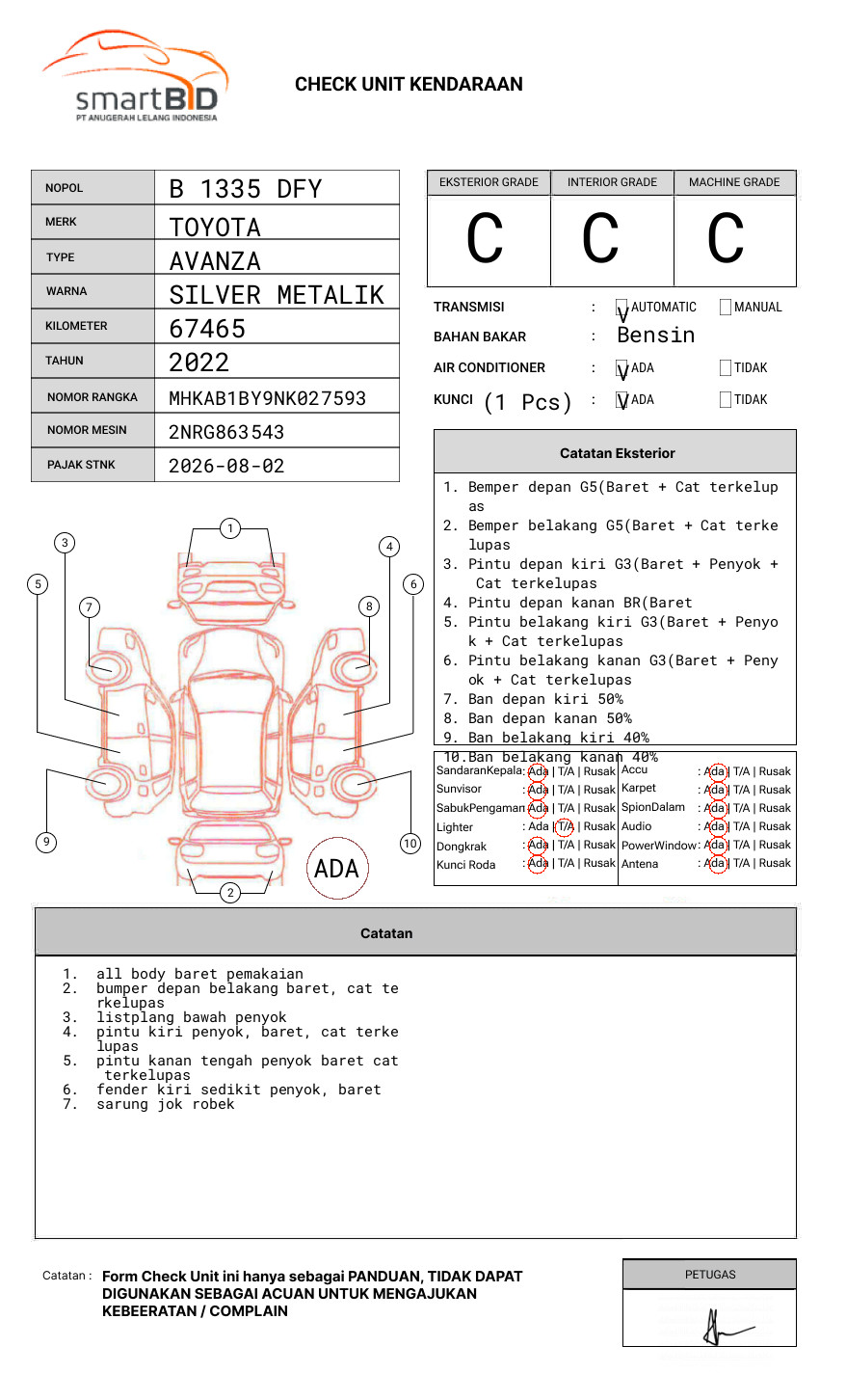 SEBELUM MELAKUKAN PENAWARAN UNIT PESERTA LELANG WAJIB MELAKUKAN PENGECEKAN UNIT DAN DOKUMEN TERLEBIH DAHULU // LEMBAR NOTICE PAJAK FISIK DGN MASA BERLAKU 02/08/2026 AKAN READY BERSAMA DGN BPKB// PIC WAHYU : 082124062748//