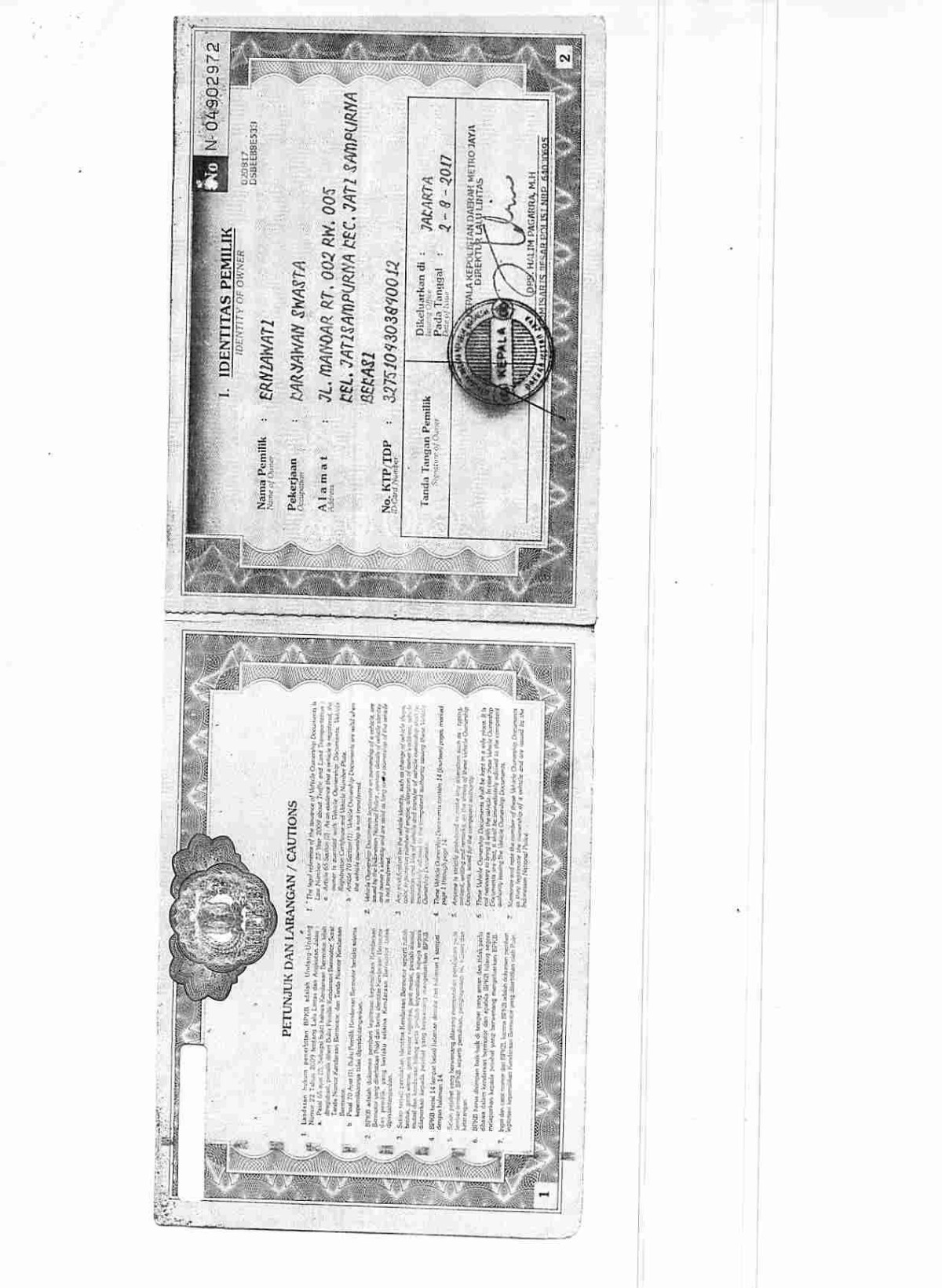 No. Polisi | : | DH 1554 ED |