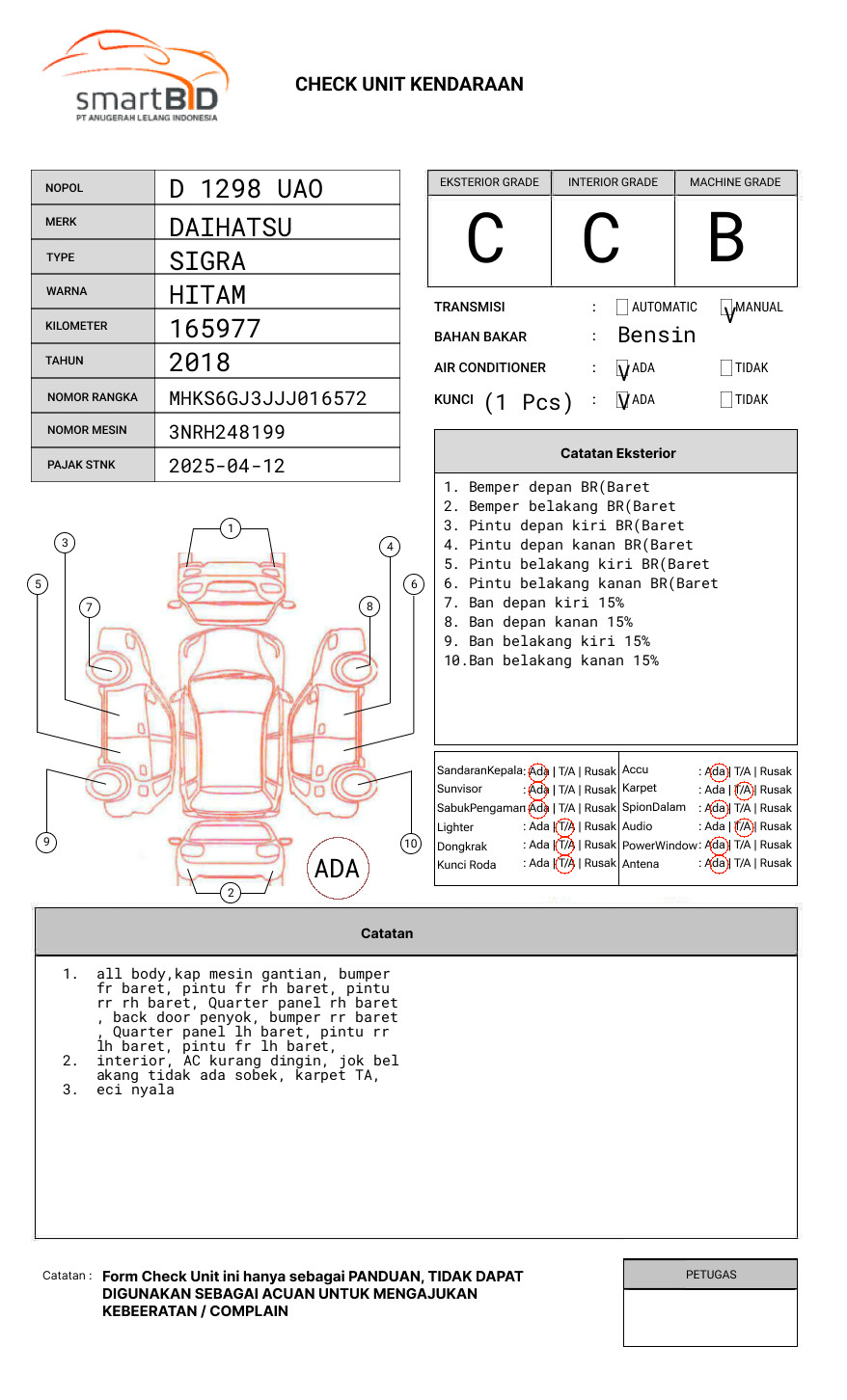 SEBELUM MELAKUKAN PENAWARAN UNIT PESERTA LELANG WAJIB MELAKUKAN PENGECEKAN UNIT DAN DOKUMEN TERLEBIH DAHULU // PIC DENNY : 0852-9442-5362 // UNIT DIKENAKAN BIAYA PPN 1.1% DARI HARGA TERBENTUK //