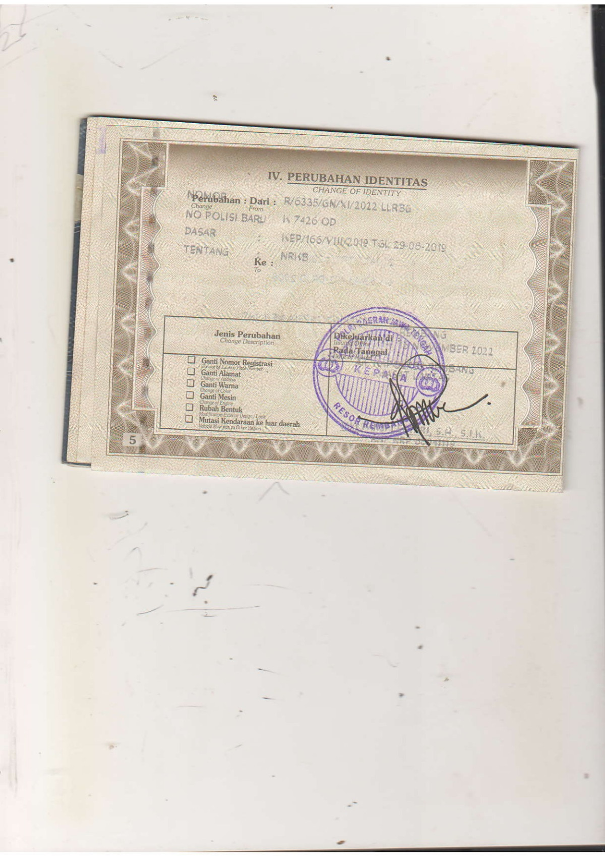 | STNK | : | Tidak Ada |