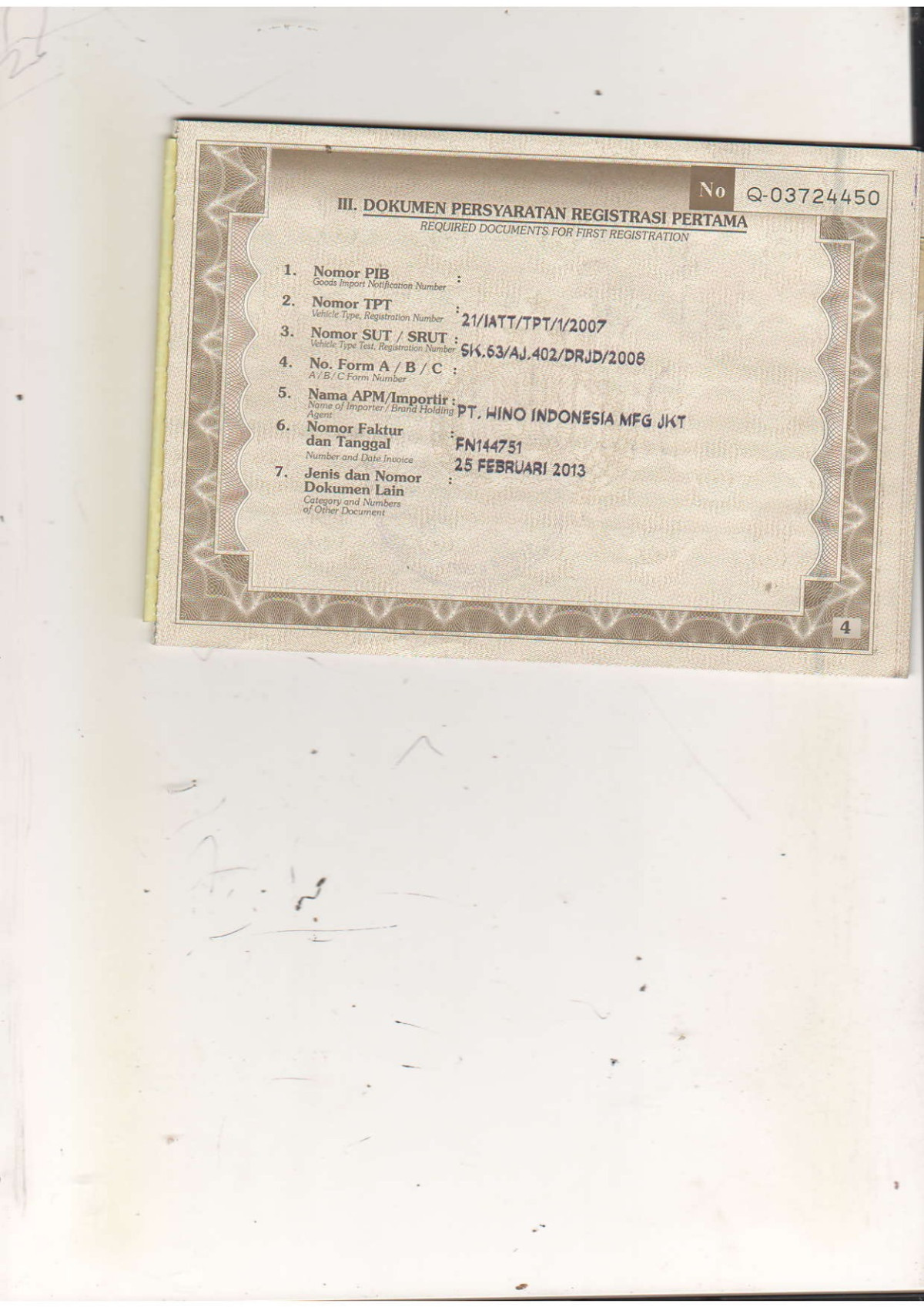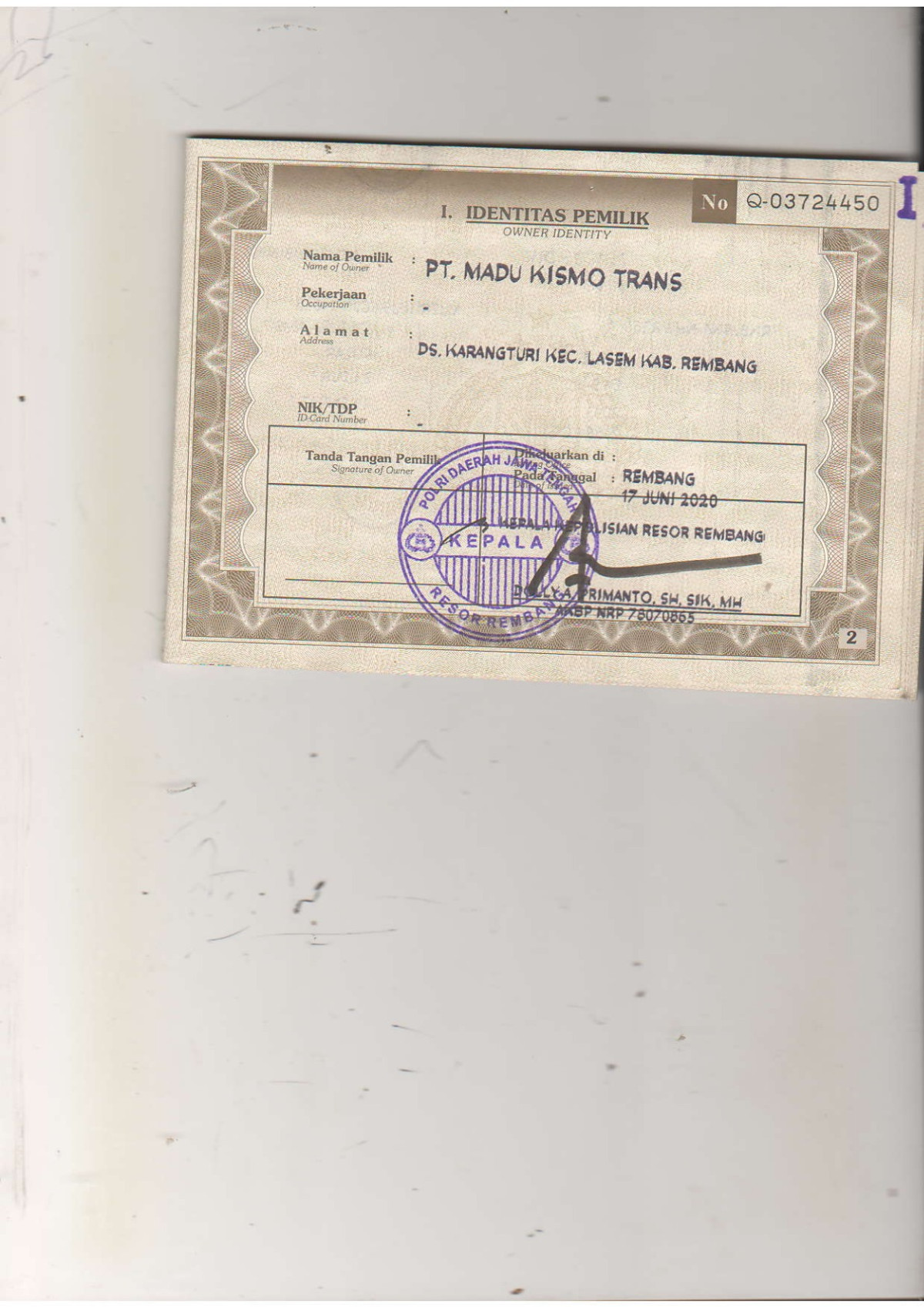 | KWT Blangko | : | Tidak Ada |