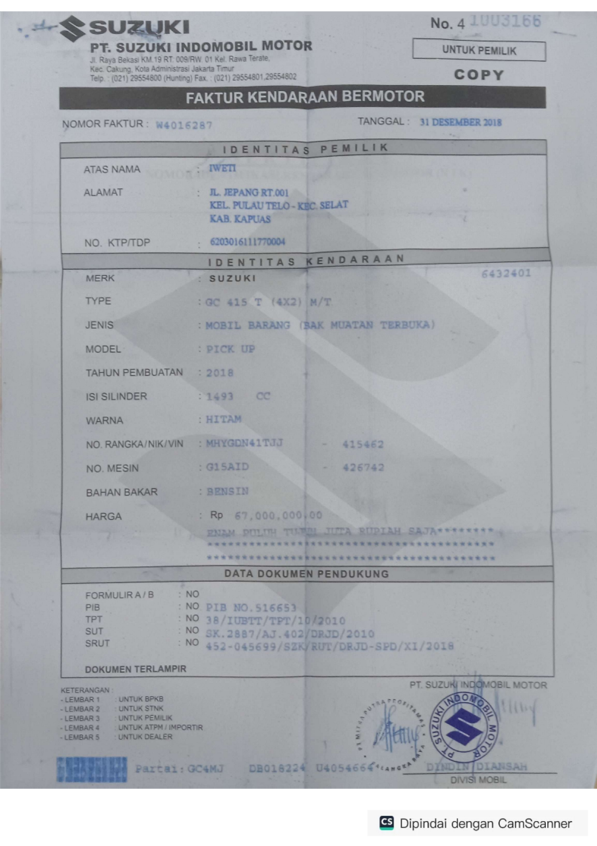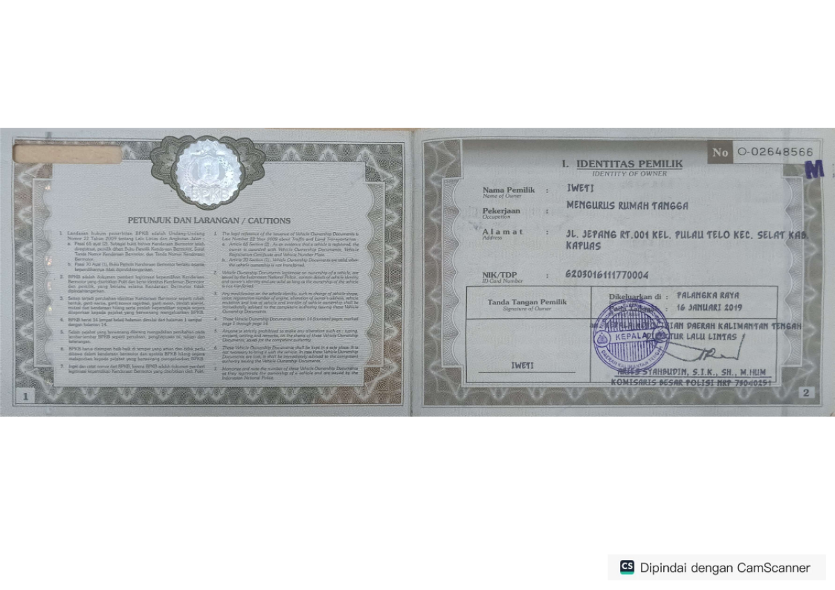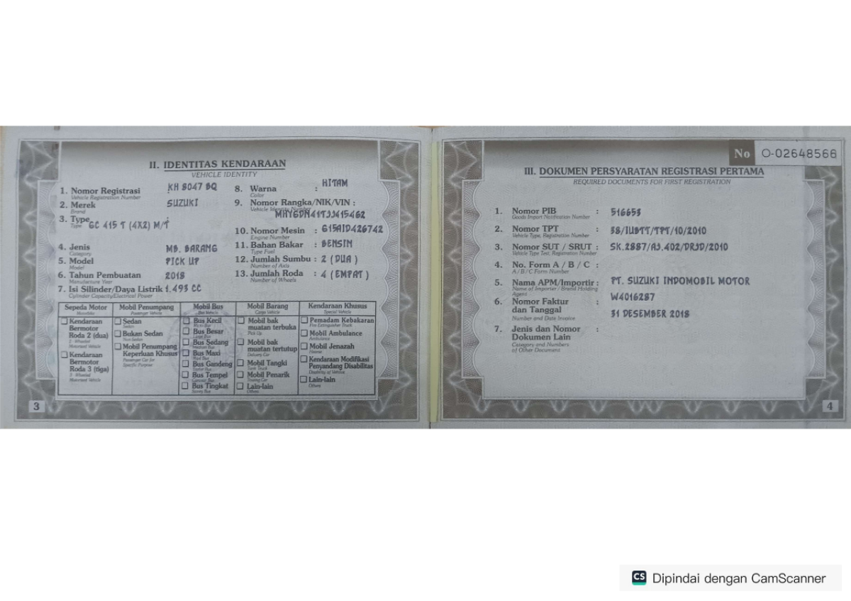 | No. Polisi | : | KH 8047 BQ |