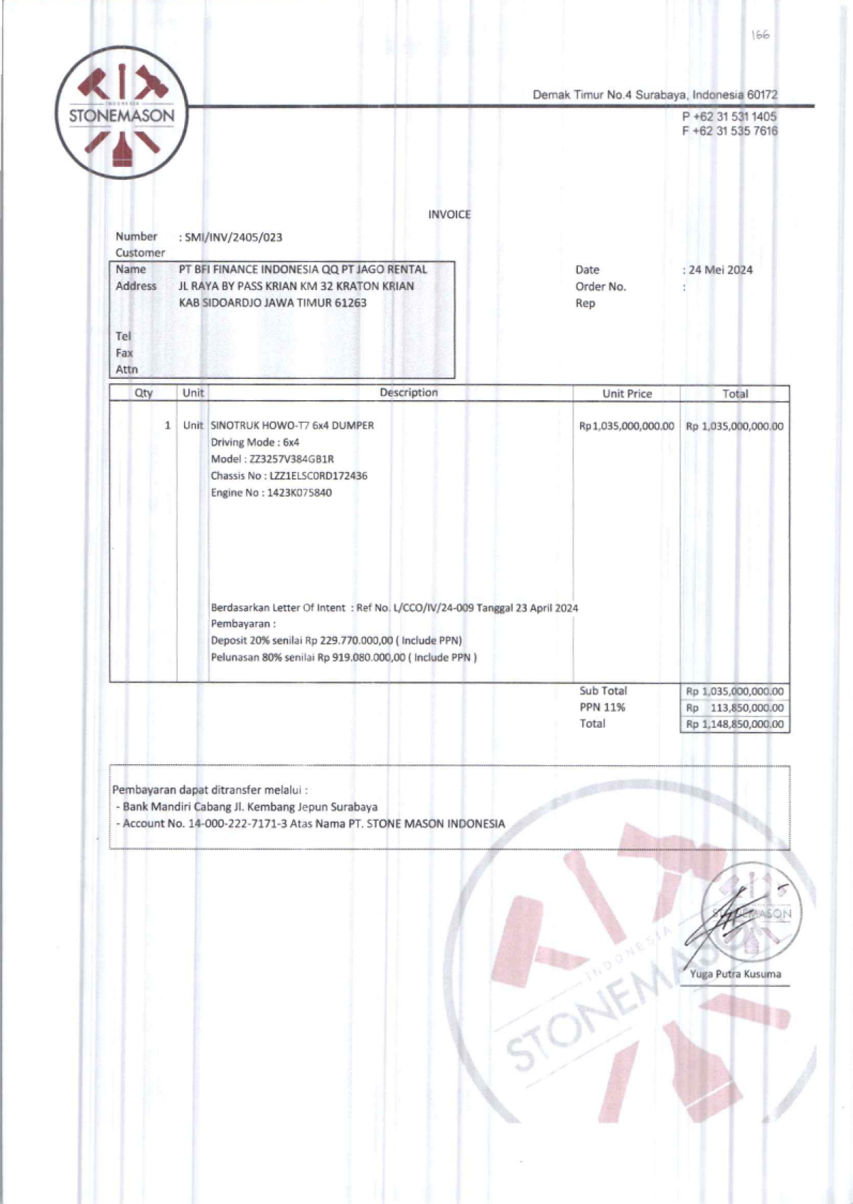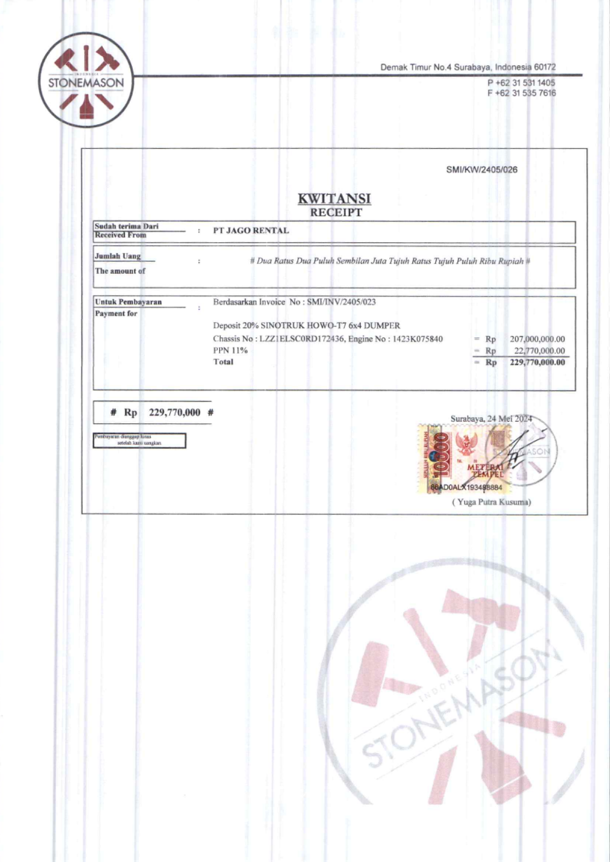 Harga dasar lot ini diatas atau sama dengan Rp500.000.000, - dikenakan minimal deposit Rp25.000.000 // Batas Pembayaran: 5 hari setelah invoice rilis