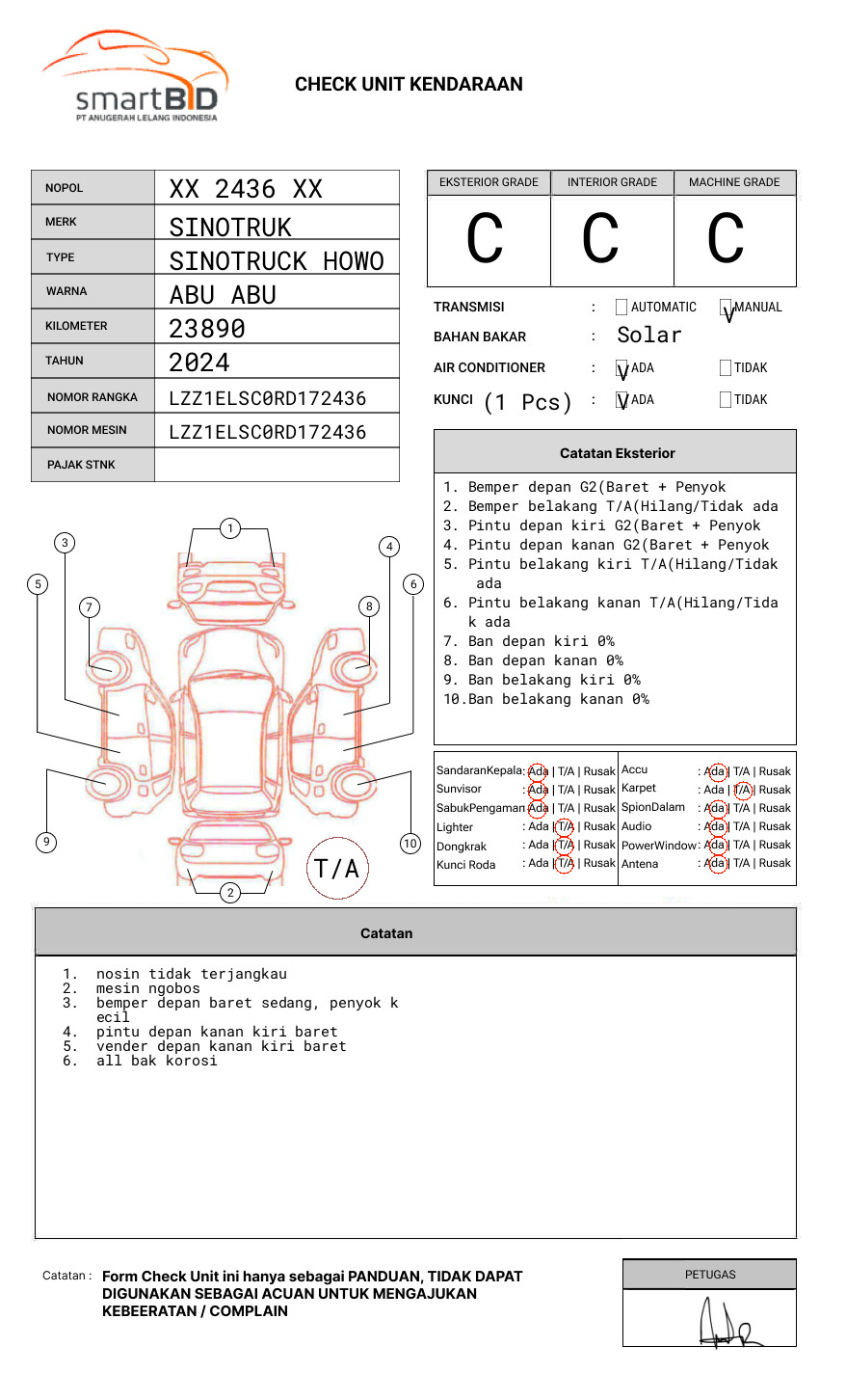 UNIT OFF THE ROAD// BPKB T/A// SEGALA PENGURUSAN DAN BIAYA YANG DITIMBULKAN DI TANGGUNG PEMENANG LELANG // SEBELUM MELAKUKAN PENAWARAN UNIT PESERTA LELANG WAJIB MELAKUKAN PENGECEKAN UNIT DAN DOKUMEN TERLEBIH DAHULU // PIC AWAL +62 895-3231-57272 // UNIT DIKENAKAN BIAYA PPN 1.1% DARI HARGA TERBENTUK // NOSIN TIDAK TERJANGKAU