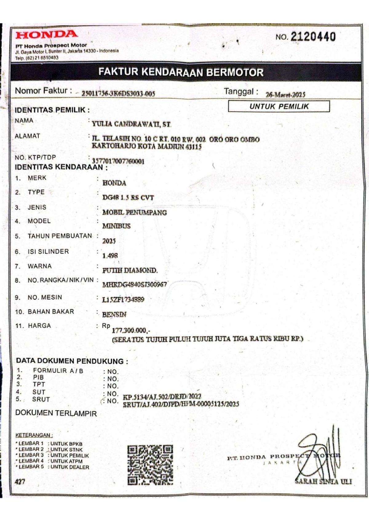 SEBELUM MELAKUKAN PENAWARAN UNIT PESERTA LELANG WAJIB MELAKUKAN PENGECEKAN UNIT DAN DOKUMEN TERLEBIH DAHULU // PIC ARDIAZ 082142028080 // UNIT DIKENAKAN BIAYA PPN 1.2% DARI HARGA TERBENTUK //