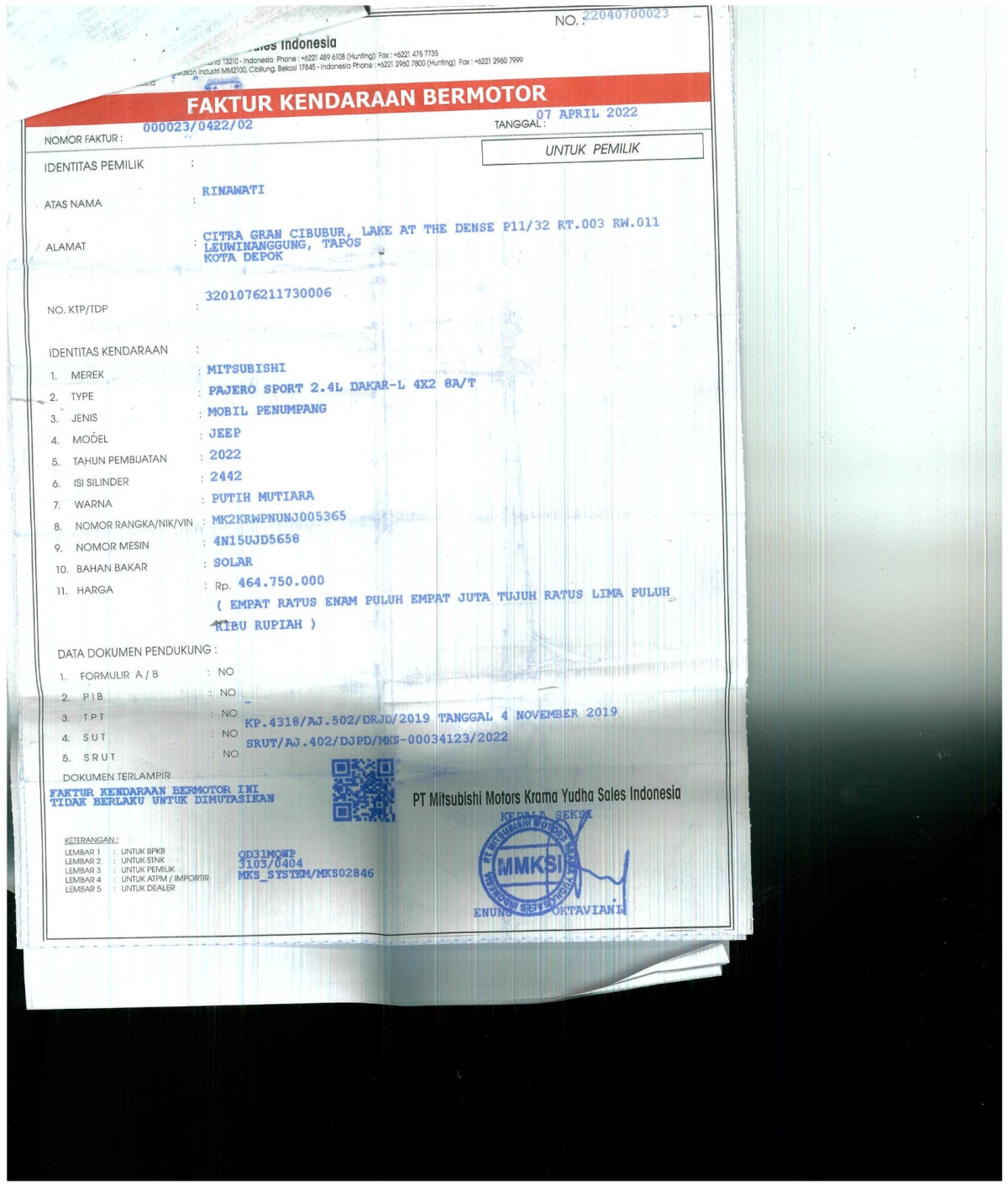 SEBELUM MELAKUKAN PENAWARAN HARAP CEK KONDISI UNIT SERTA DOKUMEN TERLEBIH DAHULU// UNIT DIKENAKAN BIAYA PPN 1,1% DARI HARGA TERBENTUK// TERDAPAT PERBEDAAN NOPOL FISIK DGN DOKUMEN// PADA NOPOL FISIK "B 2161 BRB" SEDANGKAN NOPOL PADA DOKUMEN "B 1629 EJF"// INDIKASI NOPOL PALSU/BBN GANTUNG// KET E-SAMSAT "TELAH LEPAS KEPEMILIKKAN"// PIC MAS UD : 081213061687