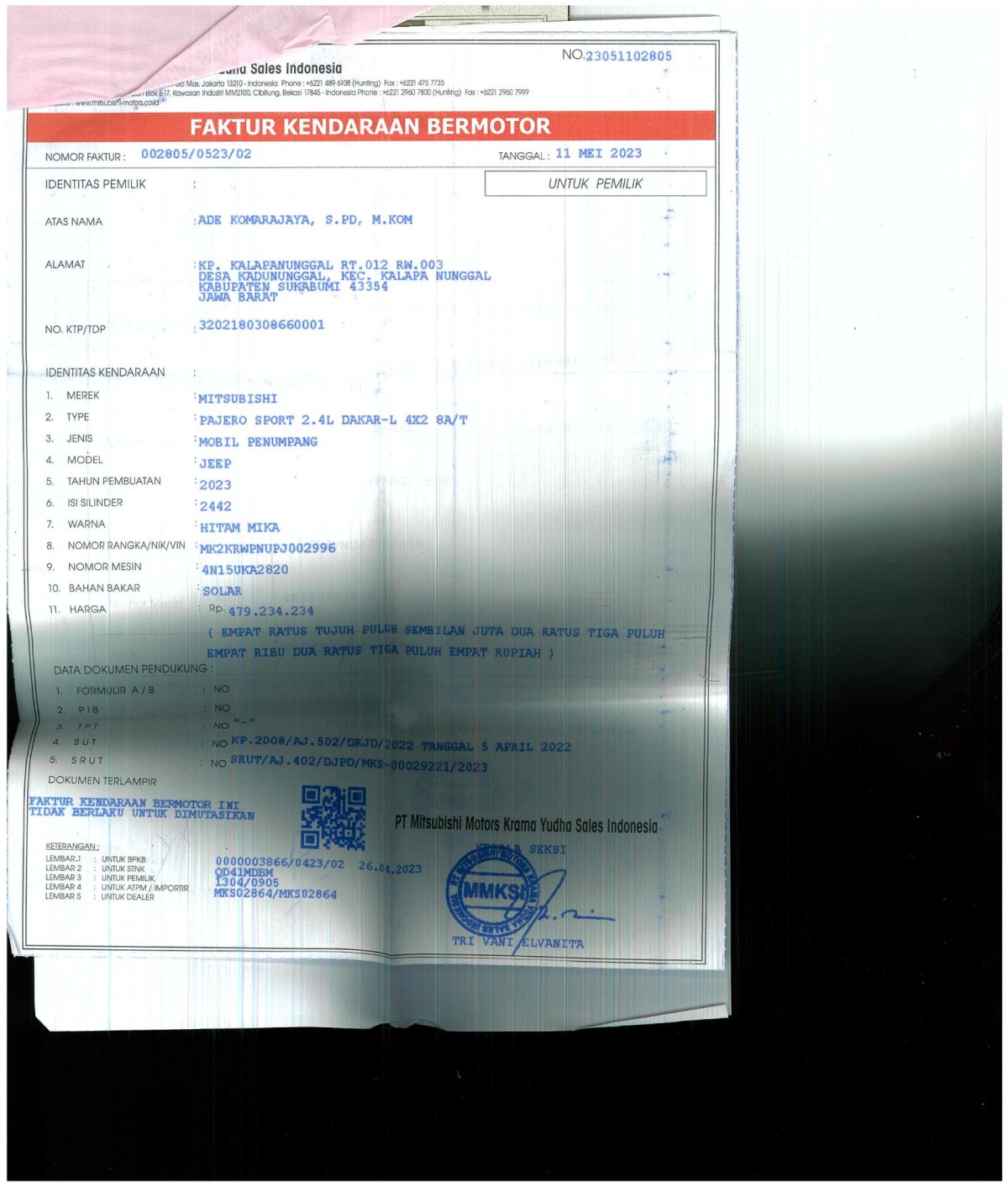 No. Rangka | : | MK2KRWPNUPJ002996 |