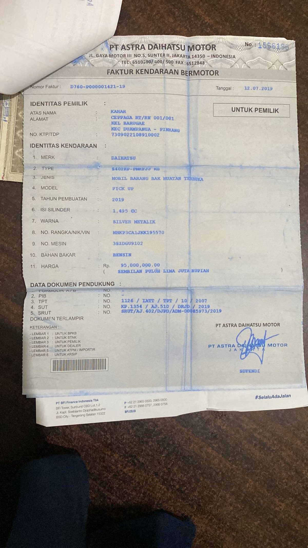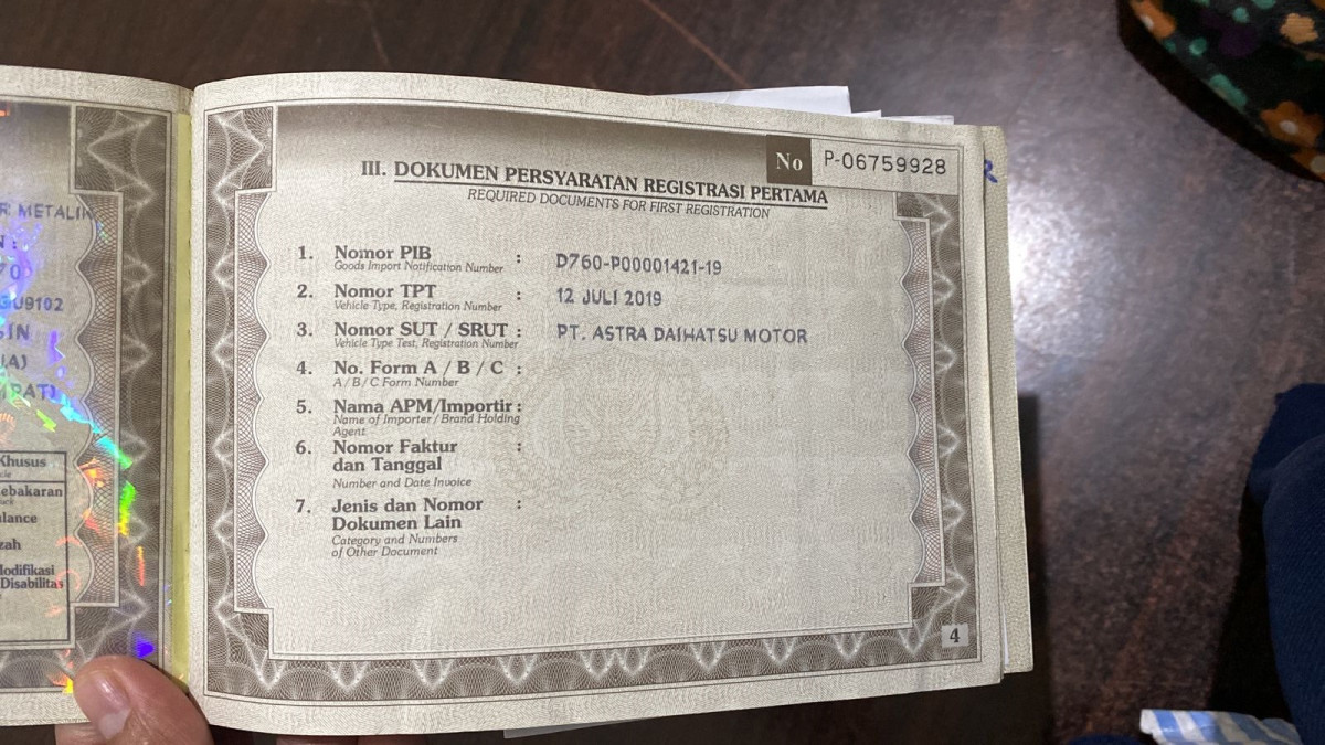 NOPOL PADA FISIK T/A // UNIT TIDAK DILAKUKAN PENGECEKAN OLEH TIM SMARTBID// SEBELUM MELAKUKAN PENAWARAN HARAP CEK KONDISI UNIT DAN DOKUMEN TERLEBIH DAHULU// WAJIB MENGHUBUNGI PIC DAN DATANG KE LOKASI UNTUK PENGECEKAN UNIT// UNIT DILELANG APA ADANYA PERMASALAHAN YANG TIMBUL DILUAR TANGGUNG JAWAB SMARTBID// PENGAMBILAN UNIT SLIDE H+2 DARI PELUNASAN // JIKA INGIN MENGAMBIL UNIT HARAP UNTUK KONFIRMASI DAHULU KE SMARTBID // JIKA YANG MENGAMBIL BIDDER HARAP MEMBAWA KTP ASLI // JIKA PENGAMBILAN DIWAKILKAN WAJIB MEMBAWA SURAT KUASA ASLI // UNIT DIKENAKAN BIAYA PPN 1,1% DARI HARGA TERBENTUK// HUBUNGI PIC IDA 0895-3553-4454-4 / HUB CS PUSAT 0811119678