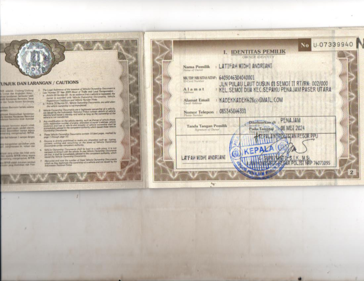 No. Rangka | : | MK2KRWMDYPJ000406 |