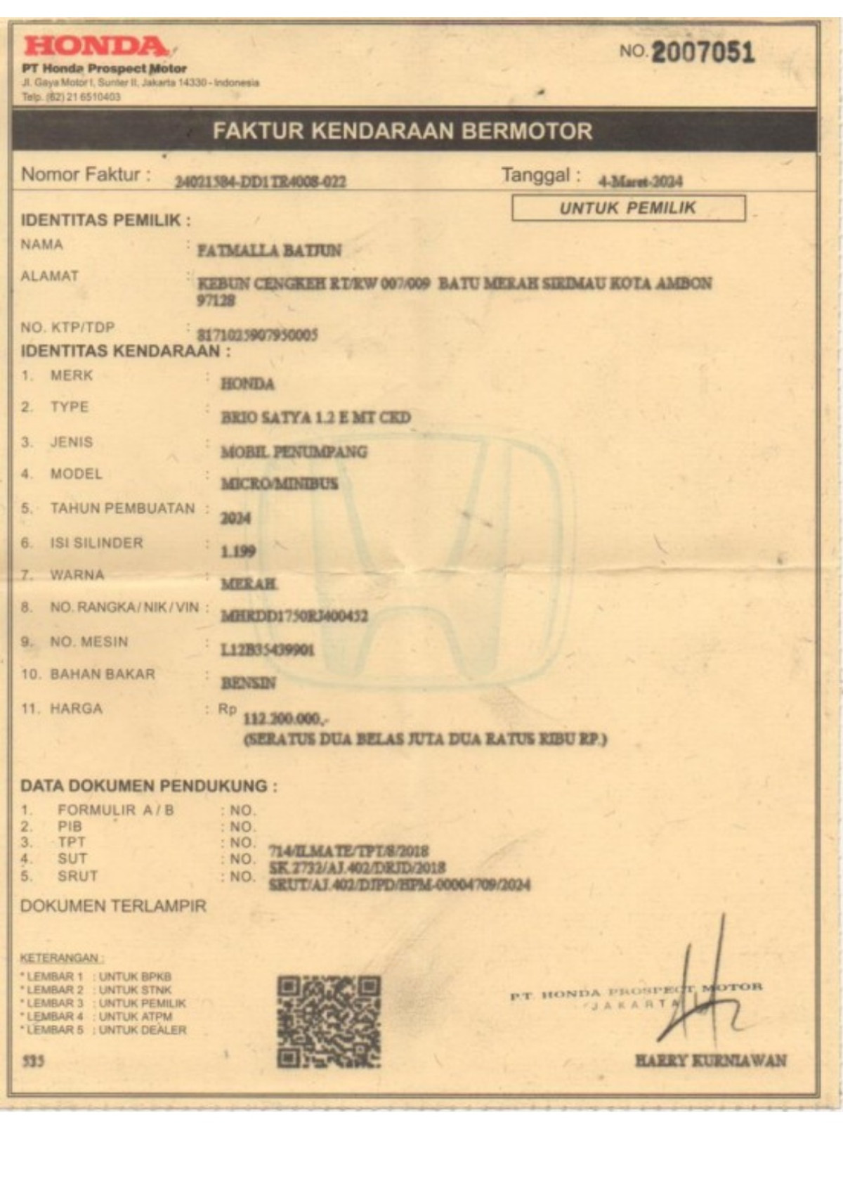 SEBELUM MELAKUKAN PENAWARAN UNIT PESERTA LELANG WAJIB MELAKUKAN PENGECEKAN UNIT DAN DOKUMEN TERLEBIH DAHULU // PIC KEVIN+62 813-5414-9141 // UNIT DIKENAKAN BIAYA PPN 1.1% DARI HARGA TERBENTUK // ADA BIAYA ROYA FIDUCIA 100,000 DITANGGUNG PEMENANG