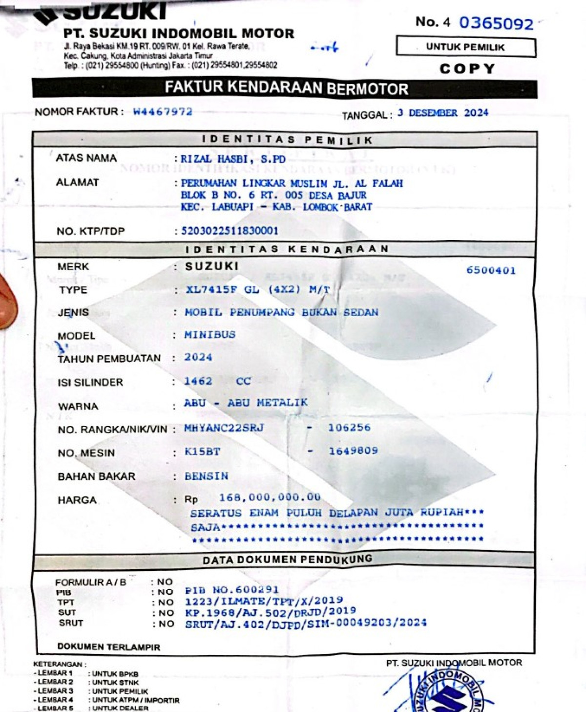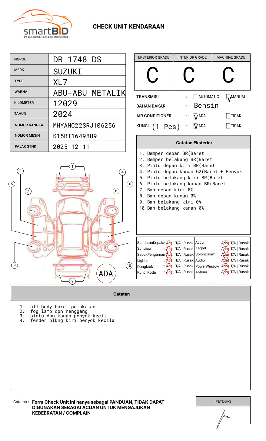 SEBELUM MELAKUKAN PENAWARAN UNIT PESERTA LELANG WAJIB MELAKUKAN PENGECEKAN UNIT DAN DOKUMEN TERLEBIH DAHULU // PIC FIRMAN 62 812-3674-7297 / CHANDRA 0878-6190-3208 / UNIT DIKENAKAN BIAYA PPN 1.1% DARI HARGA TERBENTUK //