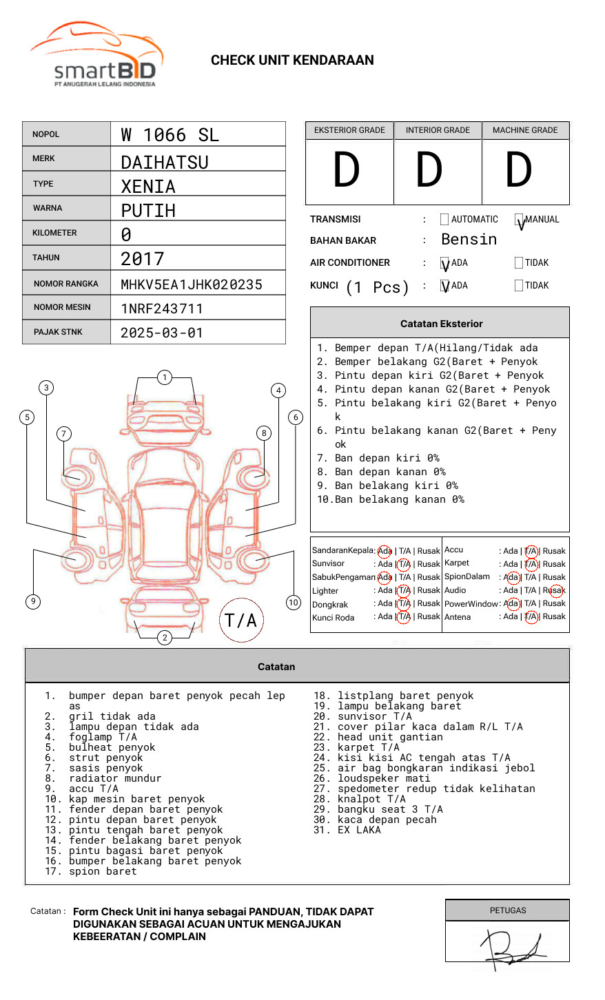 SEBELUM MELAKUKAN PENAWARAN UNIT PESERTA LELANG WAJIB MELAKUKAN PENGECEKAN UNIT DAN DOKUMEN TERLEBIH DAHULU // PEMENANG LELANG DIKENAKAN BIAYA PPN 1.1% DARI HARGA TERBENTUK // PIC AWAL +62 895-3231-57272 / ANDRI 085136886212